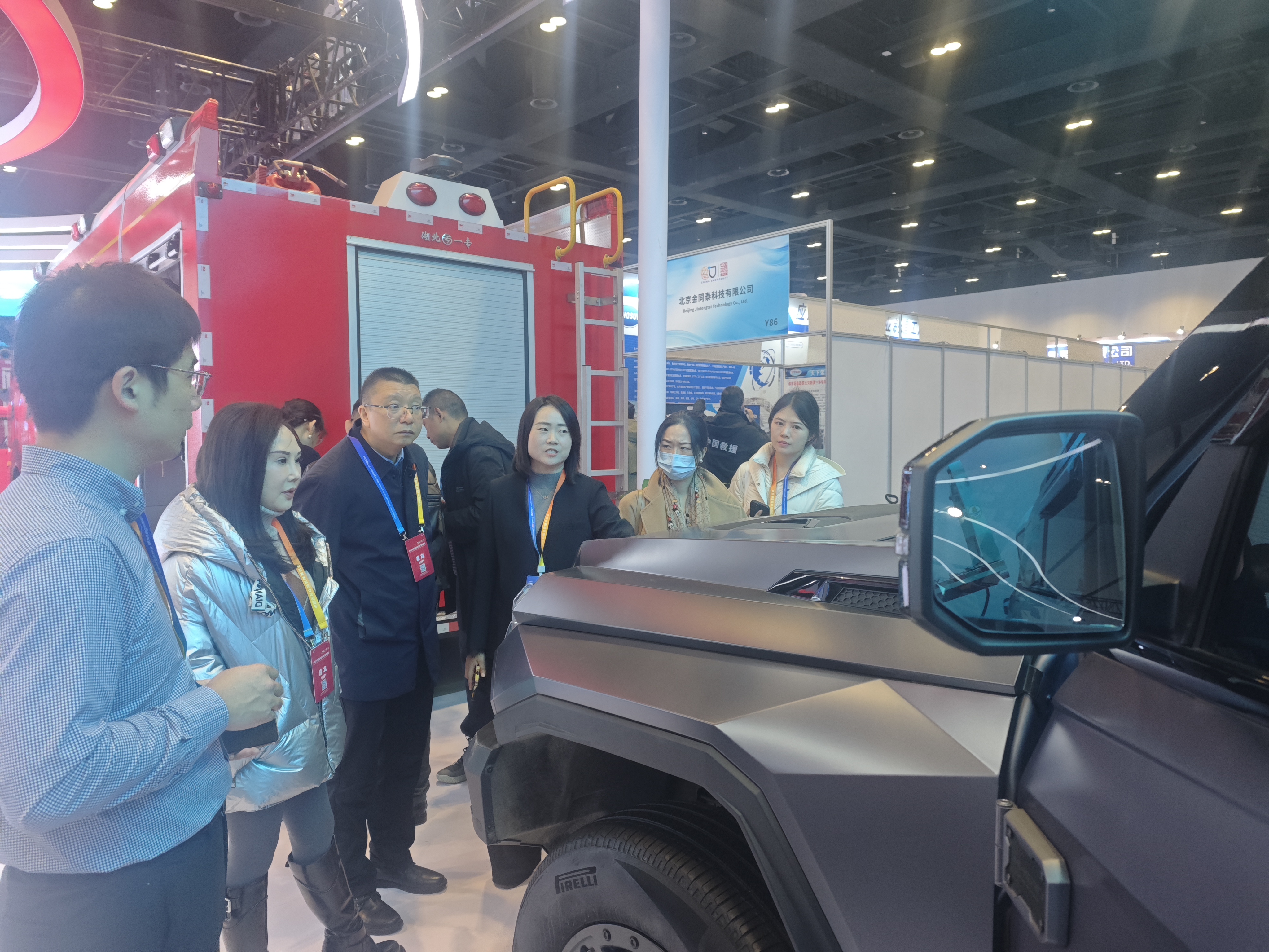 11月18日,2025中国国际应急管理展览会在北京国家会议中心开幕,湖北省十堰市携4家企业12款应急车辆参展,包括无人机车机一体消防车、前指救援空地指挥车、防爆车、纯电清障车等,吸引了50余家国内相关企业参观。