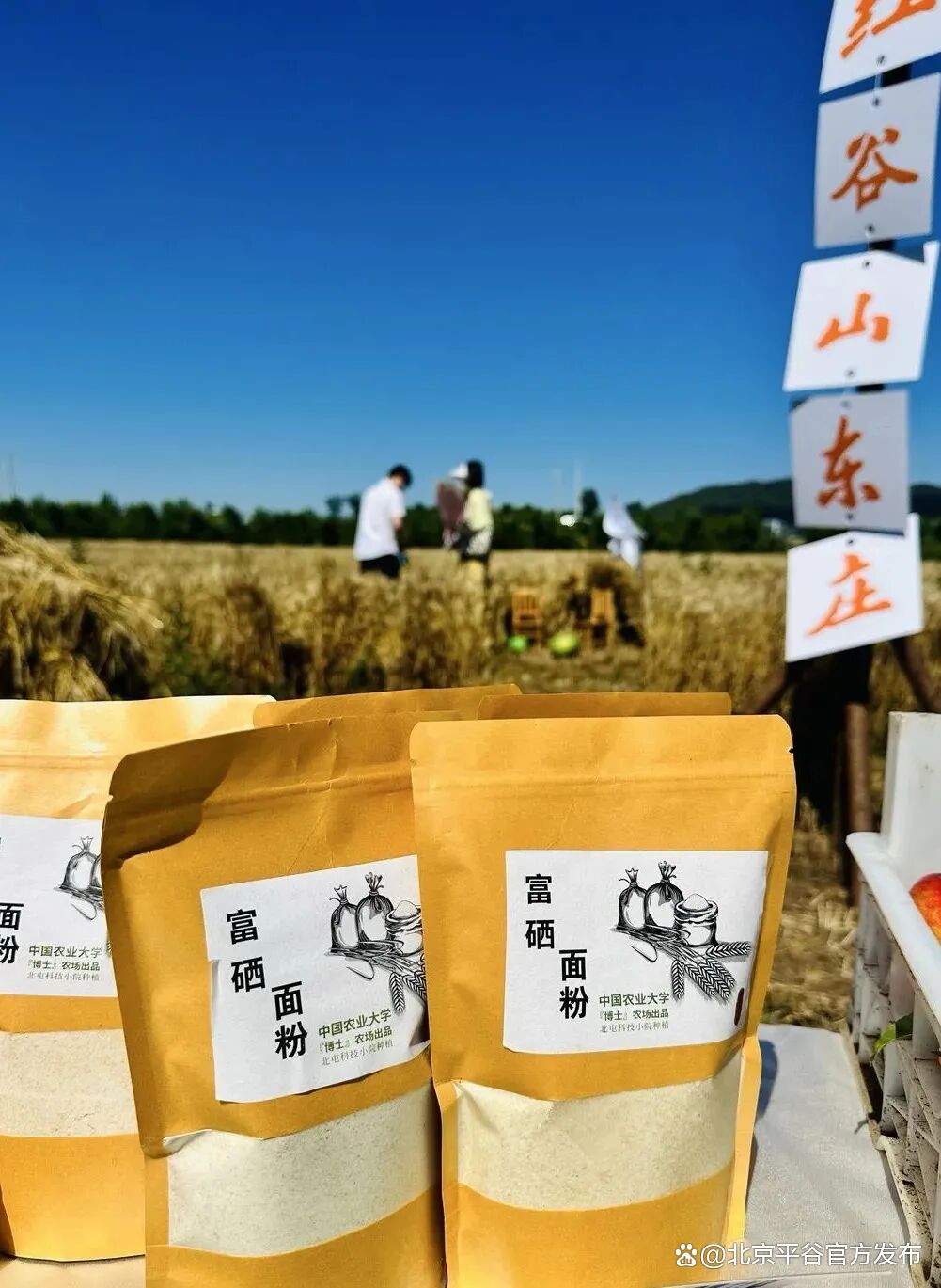 在市场拓展端方面,科技小院打通“线上+线下”融合渠道:对接平谷区农产品展销会、社区团购平台,并参与央视直播带货。2024年,通过多渠道销售富硒小麦粉、鲜食玉米等产品,带动村集体增收15万元,让“北屯味道”飘向全国。
