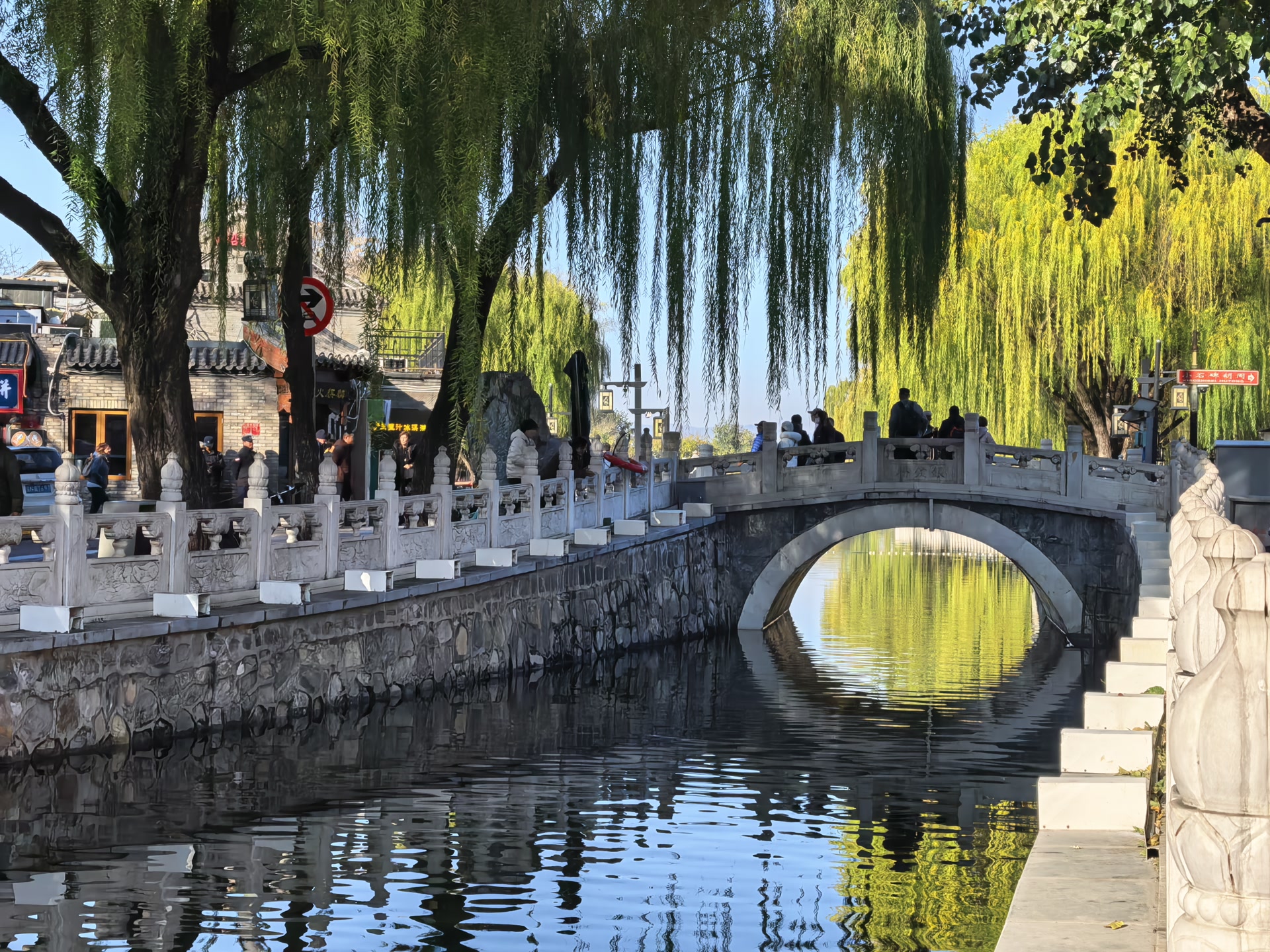 比起北海那被宫墙圈起来的、带着几分庄严肃穆的绿,什刹海的水,便显得家常多了,也鲜活多了。这里没有那般整齐划一的汉白玉栏杆,岸线是随意的,曲折的,傍着依依的垂柳,与灰墙灰瓦的民居。水面上,已有三两只游船,懒洋洋地漂着,船上的人,也多是懒洋洋的,看不出是赏景,还是单纯地晒这难得的太阳。笑语声顺着水音,断断续续地传过来,不吵,反而更添了几分闲适。