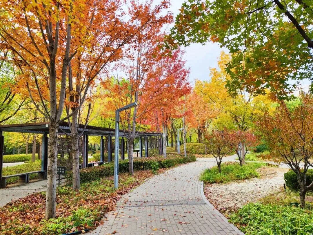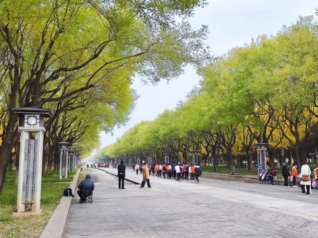 沿着御道一路向北,深秋的色彩在枝头尽情绽放,丹枫似火,银杏如金。古老的印记在脚下延伸,现代的高楼在两侧林立,时空的界限在这一刻温柔交融。终寻得那方刻着“北京中轴”字样的标识,俯身打卡的瞬间,仿佛完成了与这座古城轴线的一次默契对话。