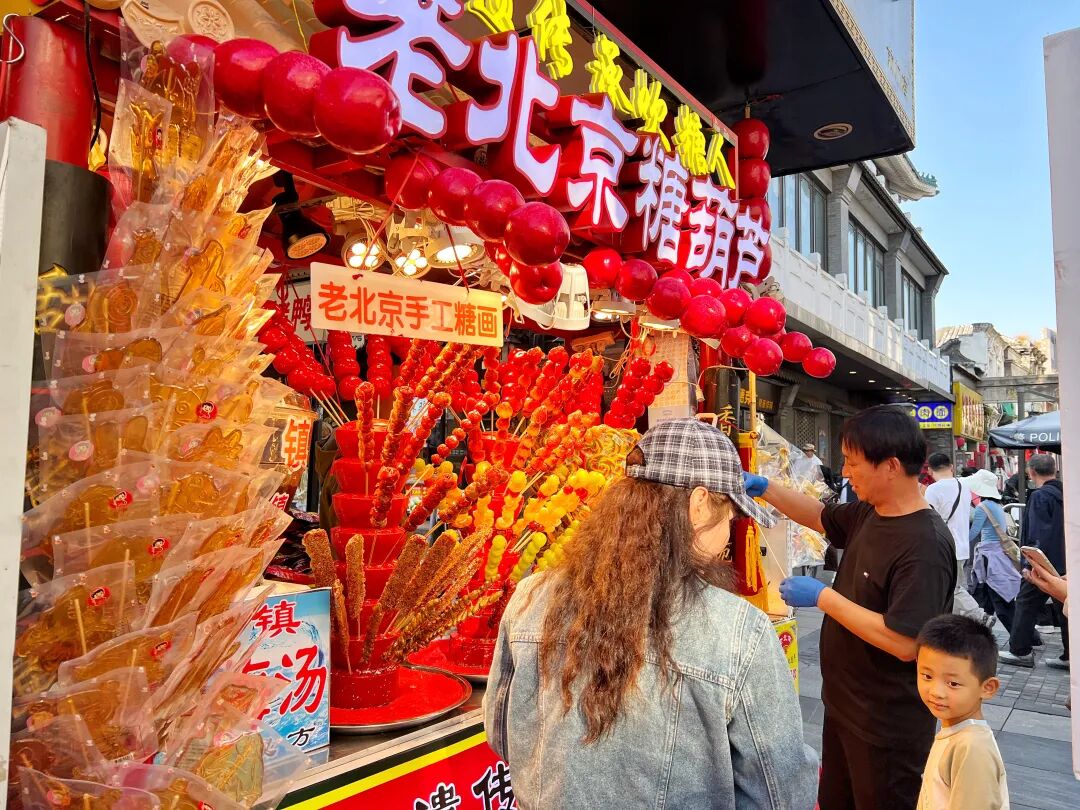 走出正阳门箭楼,方才还沉浸在都城秩序的壮阔叙事中,此刻耳畔已漾开前门大街“铛铛车”清脆的铃音,与游人交织的笑语、店铺里飘出的吆喝,共同勾勒出一幅生动的市井生活图景。