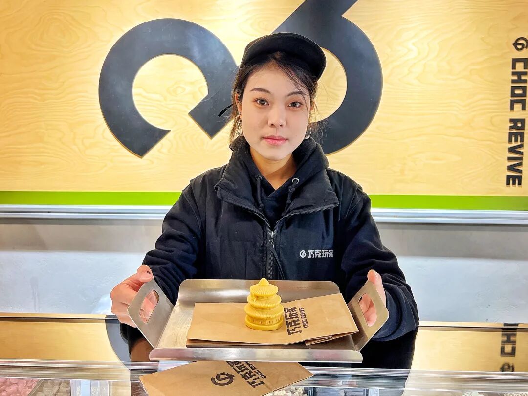 更令人惊喜的是,中轴线文化在这里不仅能观赏,还能品尝。位于南锣鼓巷的“巧克玩家”超级巧克力公司内,将天坛祈年殿、故宫角楼等中轴线地标建筑匠心复刻成精美的巧克力艺术品,独特的创意吸引不少游客驻足消费。“这是我们用巧克力讲述的北京故事,特别是去年北京中轴线申遗成功后,希望通过巧克力让中轴线文化在舌尖上甜蜜绽放。”高店长介绍,今年暑期,这些由巧克力制作而成的中轴建筑吸引众多学生打卡,近期这些“艺术品”几近售罄,“公司将尽快补货,满足大家视觉和味觉双体验。”