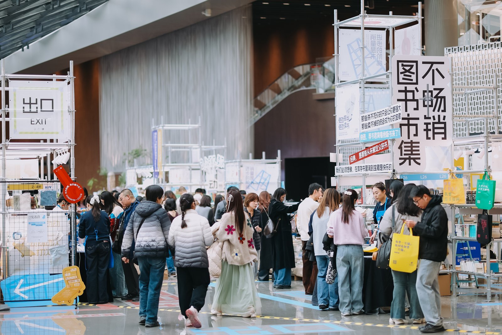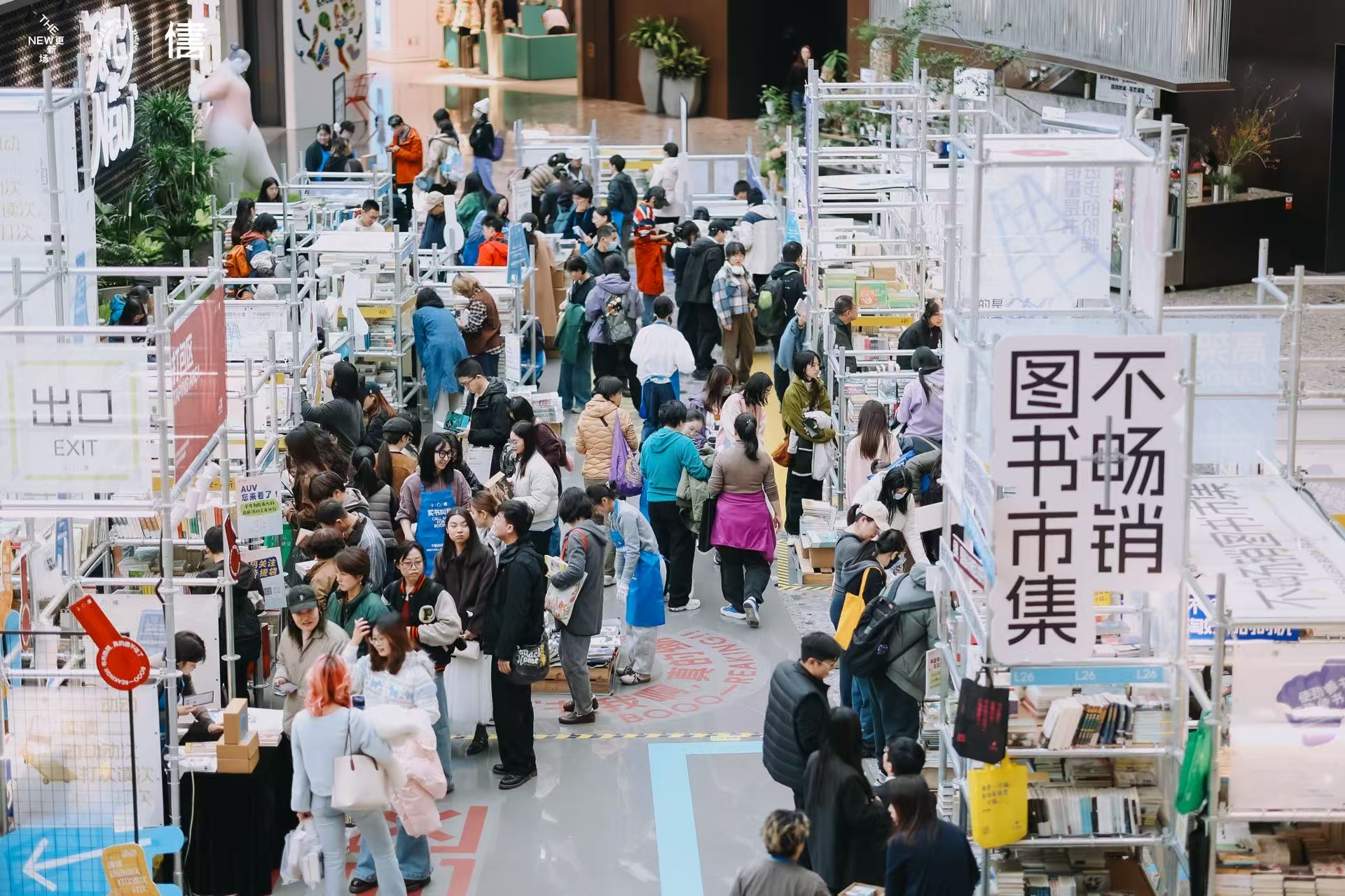 随着图书市集开幕,西单更新场B1层中庭变身出版社库房,一排排货架上摆满书籍。这场市集打破了传统书展的布局,没有各家独立摊位的界限,力求还原出版社库房的真实感。40多家出版社联合参展,带来了几千个种类、近两万本精心挑选的图书,从北京科学技术出版社的科普读物,到社会科学文献出版社的社科经典著作,再到众多知名出版社的特色书籍,每一本都在诉说着纸张背后的故事。