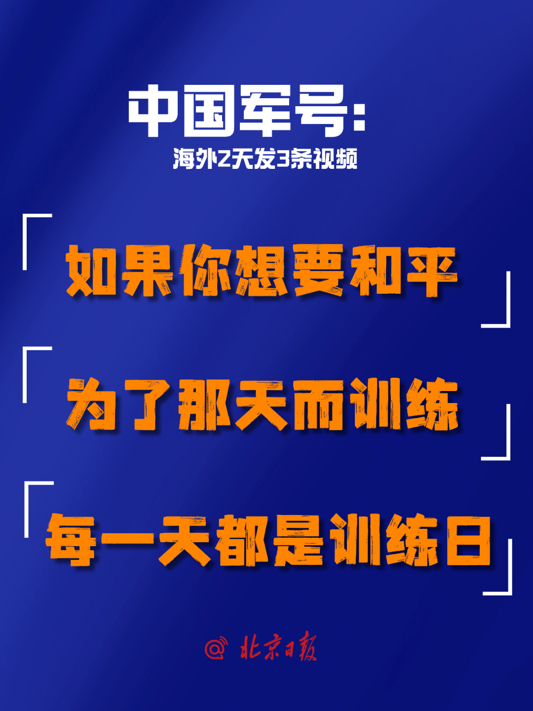 中国军号在海外2天发3条视频,配文:“如果你想要和平”“为了那天而训练”“每一天都是训练日”。