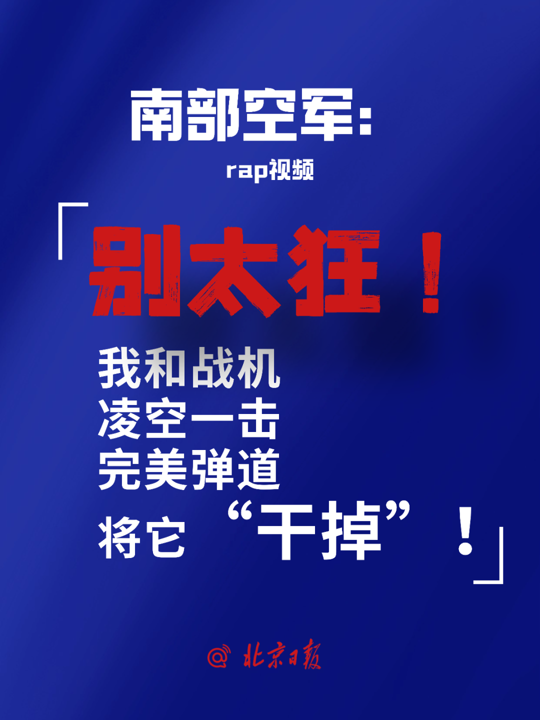 南部空军发布rap《别太狂》,配文:我和战机凌空一击,完美弹道,将它“干掉”。