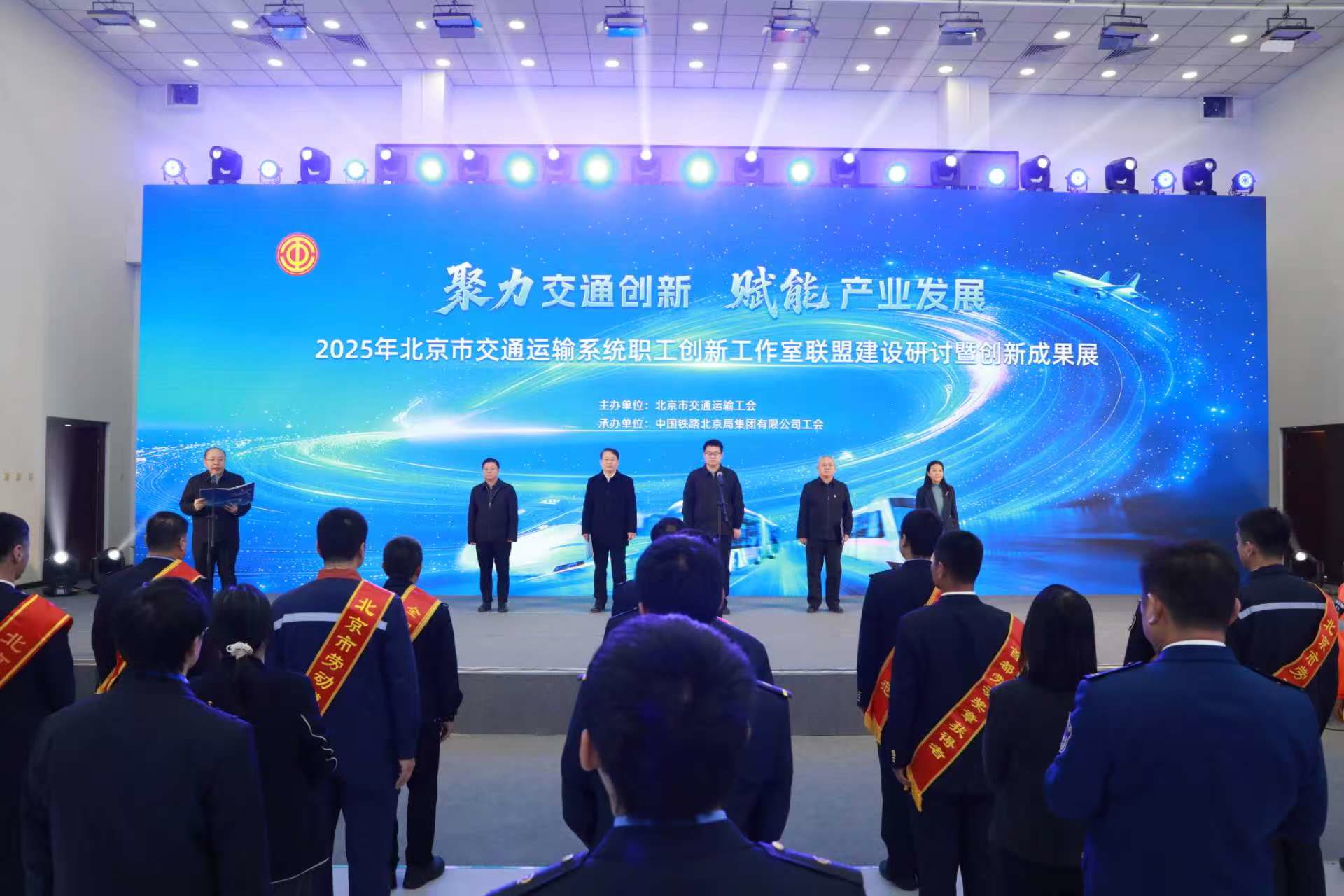 本次大会由北京市交通运输工会主办、国铁北京局工会承办,国铁北京局、北京公共交通控股(集团)有限公司、北京市地铁运营有限公司、北京市首都公路发展集团有限公司、北京祥龙资产经营有限责任公司、北京市基础设施投资有限公司、中国东方航空股份有限公司北京分公司、北京首都国际机场股份有限公司等联盟核心成员单位工会相关领导、创新工作室领军人、劳模工匠及技术骨干参加开幕式。