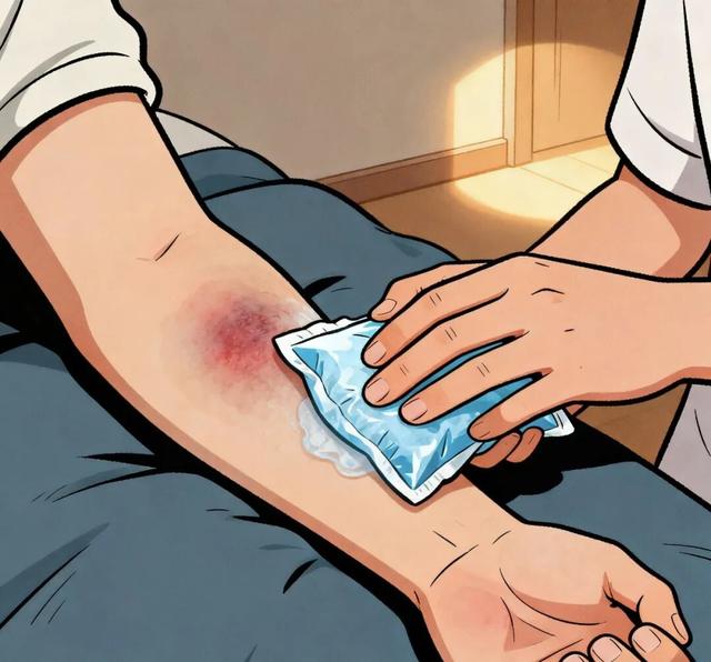 早期(24小时内):冰敷!用毛巾包裹冰袋或冷敷贴敷在淤青处,每次10-15分钟,间隔1-2小时重复几次,冷敷能收缩血管,减少继续出血和肿胀。