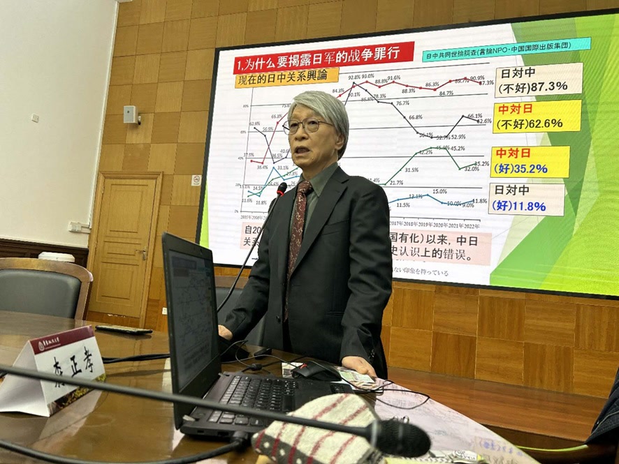 森正孝连日来在中国考察,参观了南京大屠杀遇难同胞纪念馆和上海四行仓库抗战纪念馆等场馆。“我再次学习到日本侵略者所犯下的滔天战争罪行。就在此过程中,我得知极右翼的高市发表了‘台湾有事即日本有事’这一妄言,感到怒火中烧。”