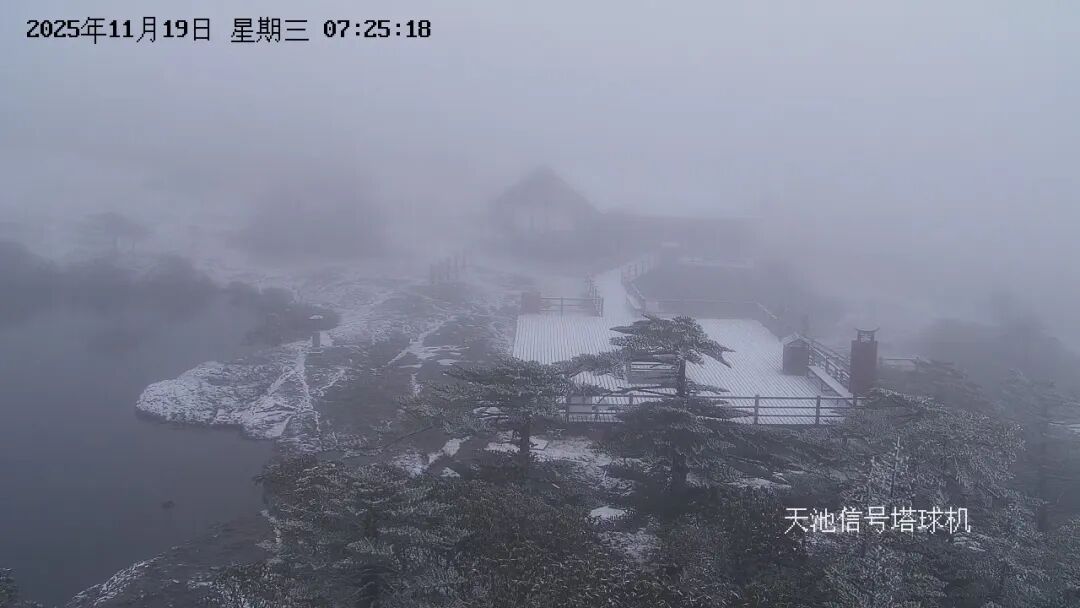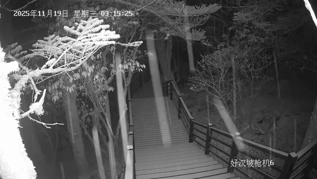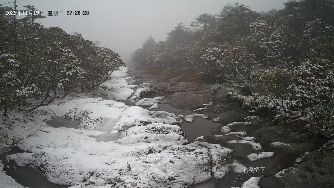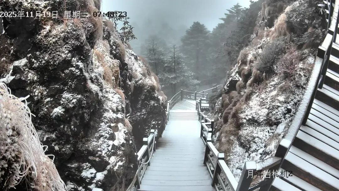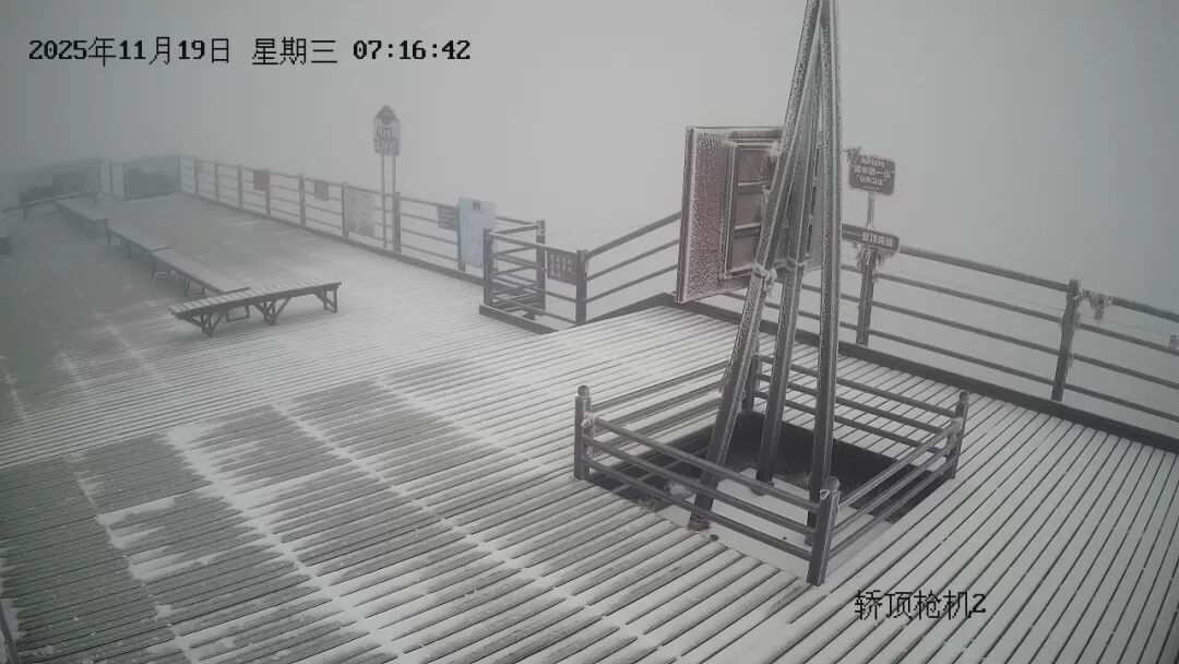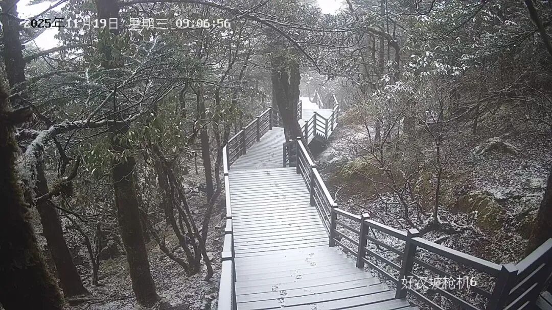 据景区监控系统记录,降雪于凌晨两点三十分左右开始,下坪子至轿顶区域出现明显降雪过程并形成薄层积雪。至清晨时分,山体已披上银装。截止上午10时许,四方景至月亮岩片区仍有零星小雪飘落。此次降雪标志着轿子山冰雪旅游季的序幕正徐徐拉开,景区已做好相关保障工作。