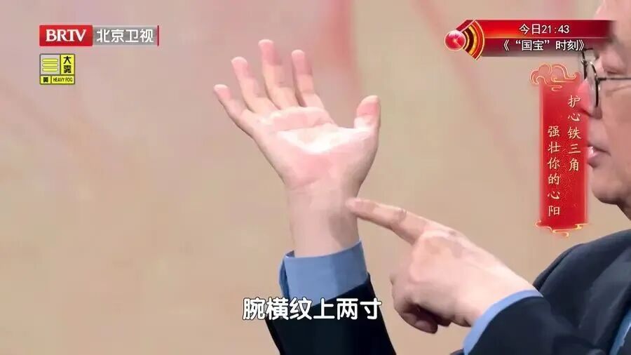 内关穴:手腕横纹向上约三指宽的位置,在两个肌腱中间。感觉心慌时,按揉这个穴位能帮助安定心神。