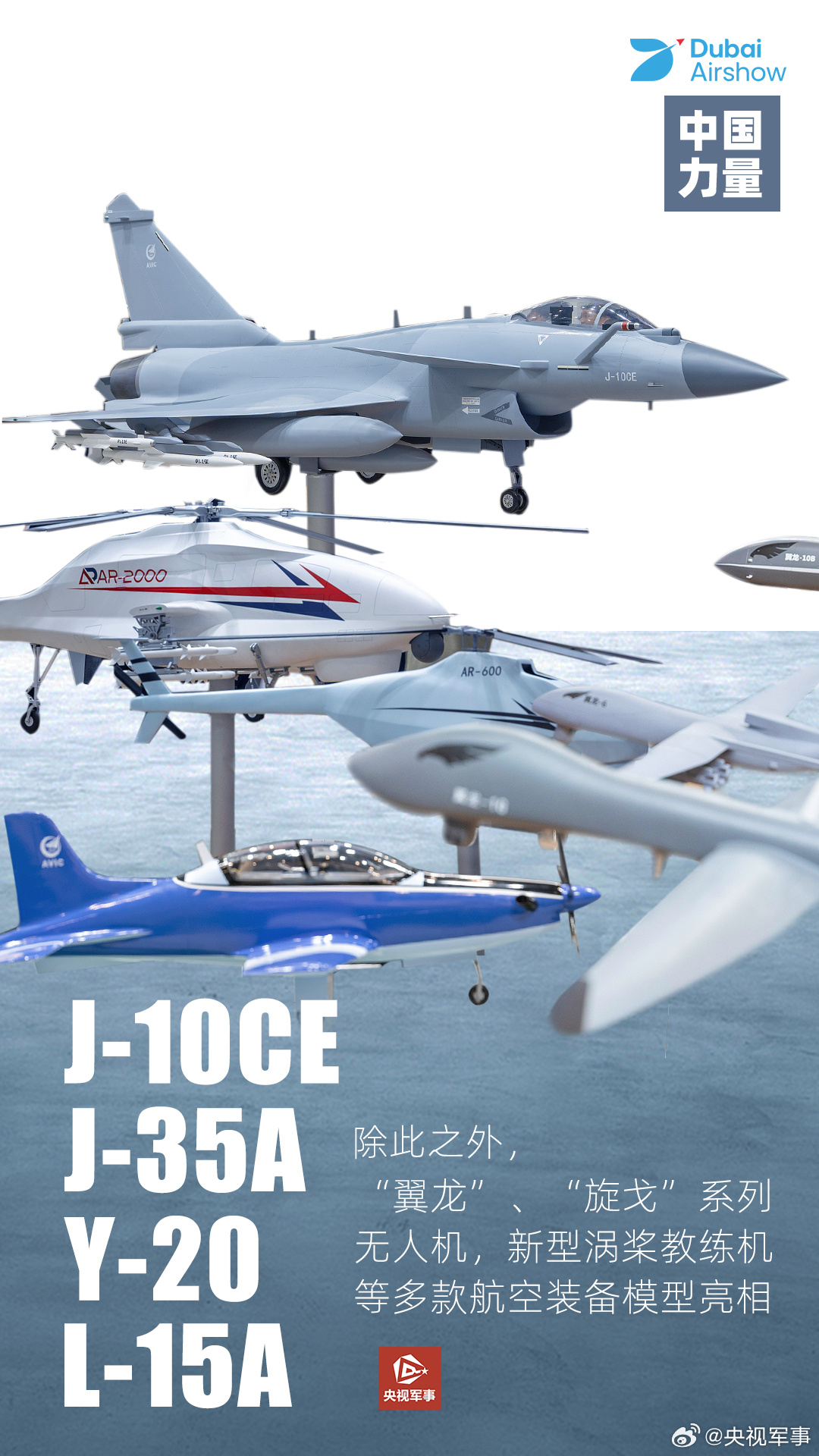 C919和C909首次在中东地区展示、翼龙-X首次以静态形式亮相境外航展、中国自主研制的L-15A作为阿联酋空军“骑士”飞行表演队的新装备,首次以编队形式在迪拜航展进行飞行展示……在第十九届迪拜航展上,中国装备彰显出中国航空航天的自主创新硬实力,更传递着“中国智造”走向世界的底气与自信!