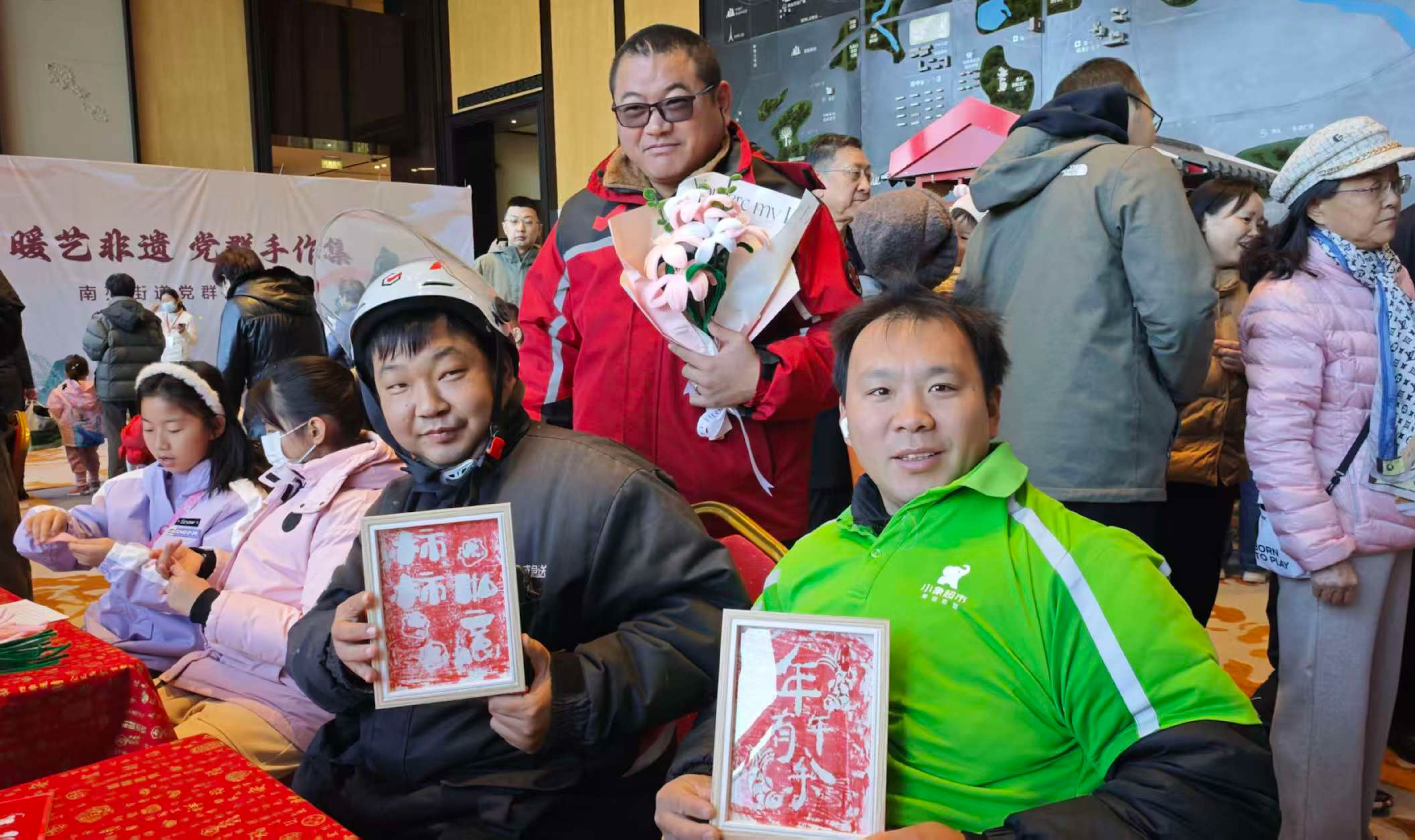初冬时节,丰台区南苑街道党群服务中心在社区举办“暖艺非遗 党群手作集”主题活动,吸引党员群众、亲子家庭及外卖骑手等新就业群体踊跃参与。