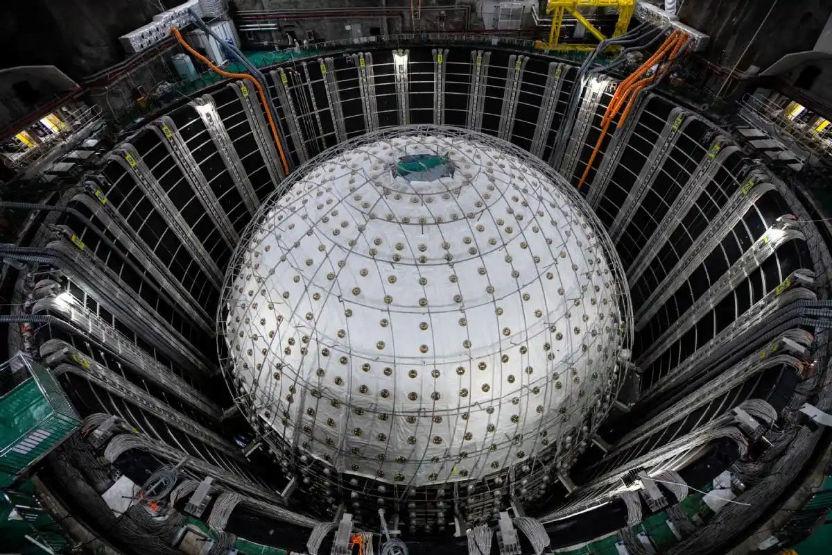 11月19日,中国科学院高能物理研究所举办发布会并宣布,位于我国广东江门的大科学装置江门中微子实验(JUNO)装置建设成功并发布了首个物理成果。利用JUNO投入运行后59天(今年8月26日至11月2日)获取的数据,JUNO合作组成功测量了两个关键的“太阳中微子振荡参数”,并将测量精度提升至此前最好结果的1.5倍到1.8倍。