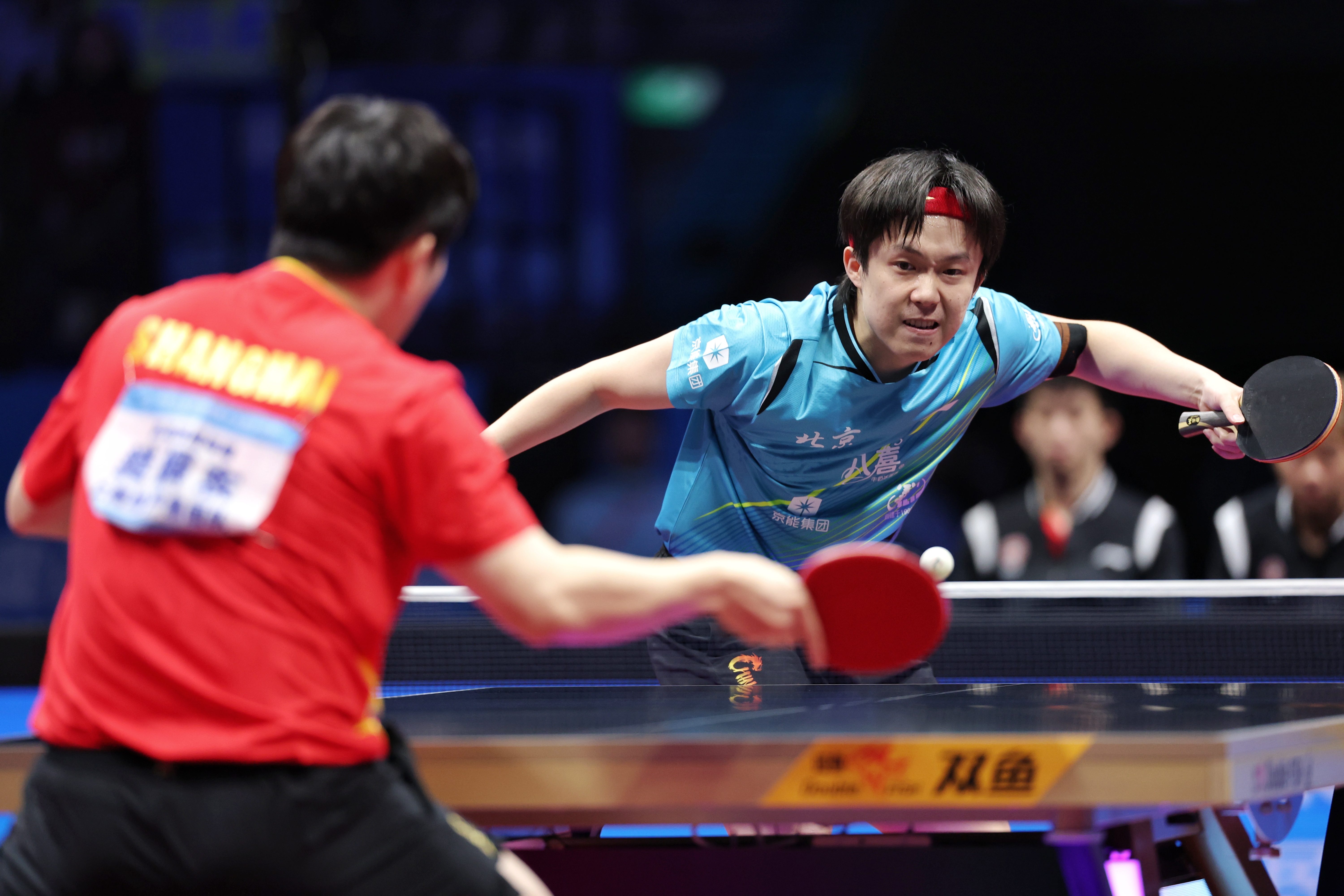 第二场单打,两队主将王楚钦和樊振东正面交锋。在男单半决赛中,樊振东曾以4比2战胜王楚钦,并最终赢得了男单冠军。5天之后,两人在团体决赛又碰面了。王楚钦以11比8赢下了首局,樊振东以11比7追回一局。两人多次打出多回合的相持球,樊振东的得分率更高,以11比3赢下第三局。王楚钦在第四局开局还是处于劣势,打到1比3时,北京队叫了暂停。王楚钦此后反超了比分,但樊振东调整能力很强,很快又赢得了主动权,并一度手握4个赛点。王楚钦放手一搏,连续挽救3个赛点,但还是输掉了比赛。王楚钦用头撞击了球台,显然有些失望。樊振东在本届全运会的男单、男团打过的10场比赛,取得全胜。