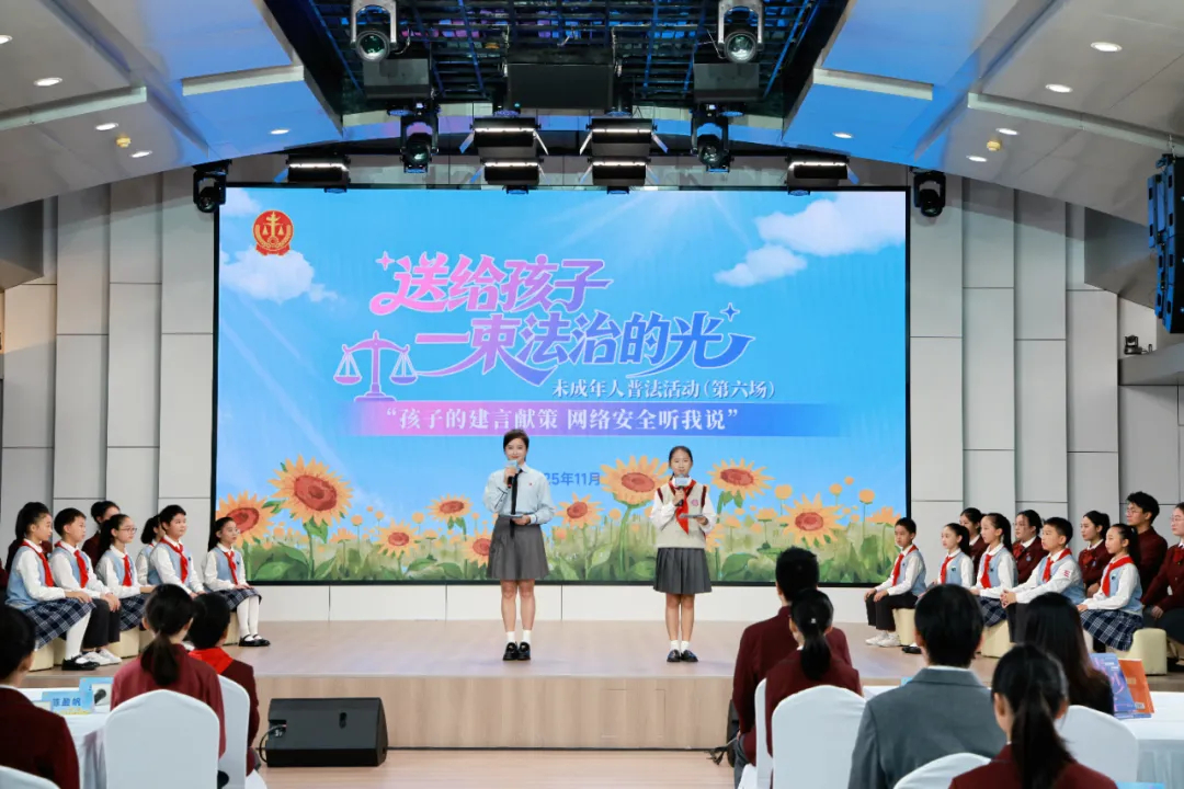 本次活动以“孩子的建言献策 网络安全听我说”为主题,开展以案释法、家庭教育指导,提出立法建议、宣读自治规范、发布典型案例等多元形式,为孩子们带来一堂生动而深刻的法治课。