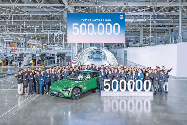 昨天,第50万辆小米汽车在位于北京经济技术开发区的小米汽车超级工厂下线。自2024年3月28日首款车型SU7正式发布,小米汽车用602天、不足20个月,刷新了全球新能源车企50万辆下线的最快纪录。