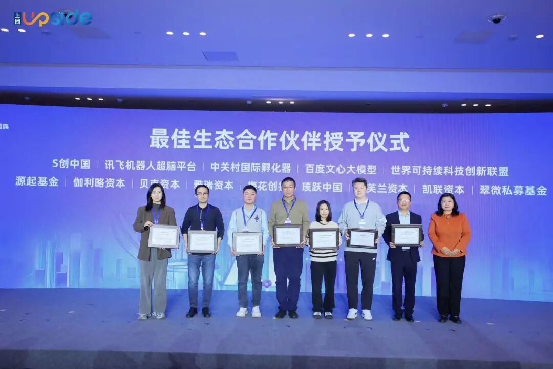 本次赛事还呈现出创投生态资源协作共享、头部企业牵引作用明显等特点。大赛期间围绕企业伴随服务,共举办20场赛事相关活动,龙头企业、国际创投平台、金融机构、专业服务机构、园区载体等资源为赛事的举办及构建繁荣创新生态提供了坚实支持。为表彰生态伙伴的卓越贡献,盛典现场授予百度文心大模型、讯飞机器人超脑平台、世界可持续科技创新联盟、S创中国、氪星创服、讯飞创投、PNP璞跃中国、梅花创投、雅瑞资本、安芙兰资本、伽利略资本、贝克资本、翠微私募基金、凯联资本、零以创投、源起基金等16家机构“赛事最佳生态合作伙伴”称号。