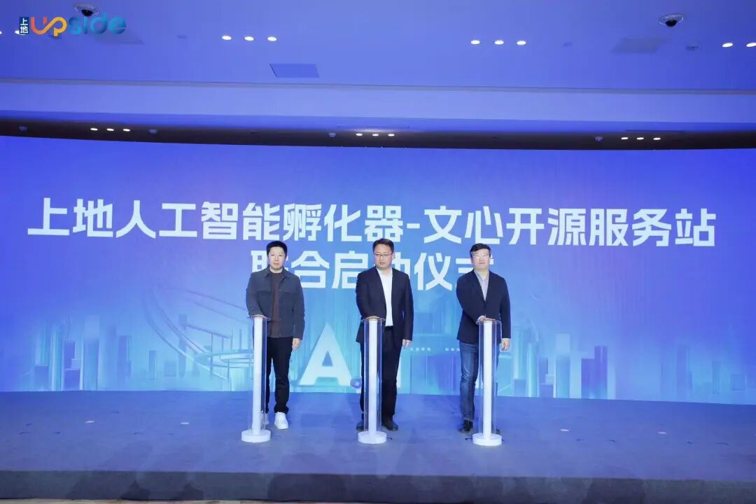 大赛不仅是竞技场,更是产业发展的助推器。现场,上地街道、氪星创服及百度文心大模型三方代表为上地人工智能孵化器-文心开源服务站按下“启动键”。该服务站将作为区域人工智能产业的核心公共技术平台,为辖区企业及大赛优秀项目提供从模型精调、应用开发到场景验证的全链条支撑,为大模型技术的普惠应用与产业创新注入强劲动力。