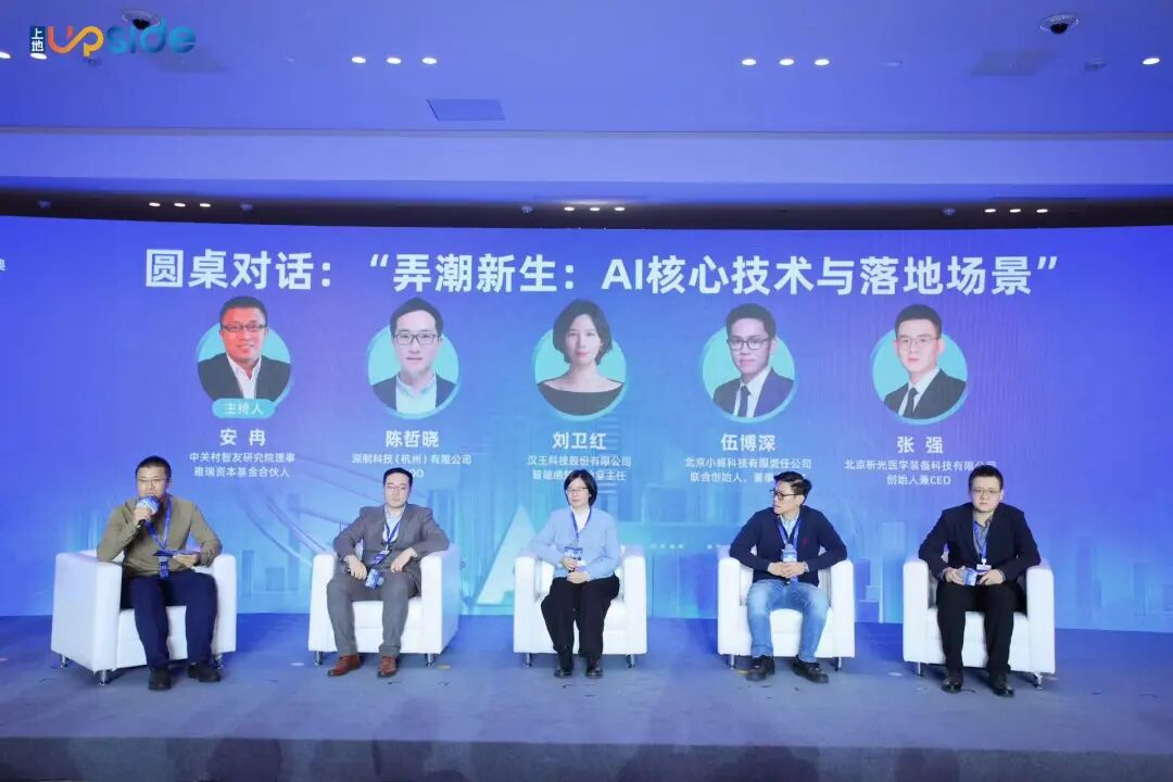 圆桌对话环节,中关村智友研究院理事、雅瑞资本基金合伙人安冉主持,与汉王科技股份有限公司智能感知实验室主任刘卫红、北京小蝇科技有限责任公司联合创始人、董事会秘书伍博深、北京析光医学装备科技有限公司CEO张强、深制科技(杭州)有限公司COO陈哲晓围绕“弄潮新生:AI核心技术与落地场景”的主题分享了在核心技术攻关、商业化落地、市场开拓、产学研协同等方面的挑战与经验,为上地街道持续优化创新生态、精准服务区域内人工智能企业提供了重要参考。