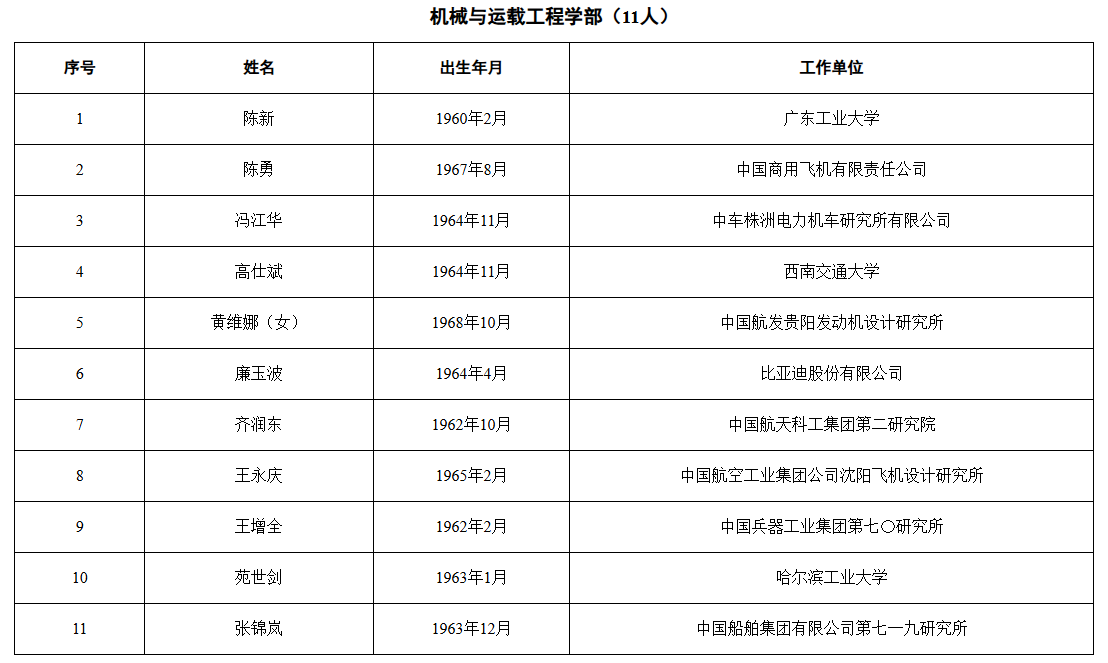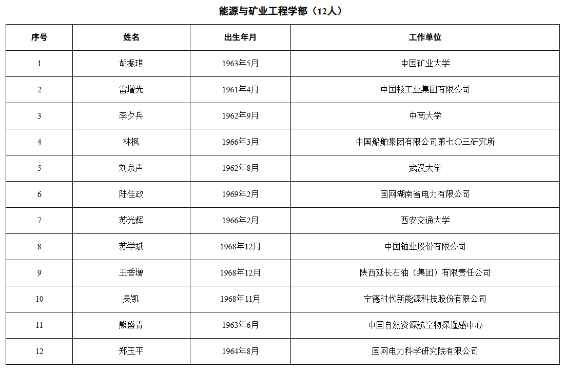 关于公布中国工程院2025年院士增选当选院士名单的公告