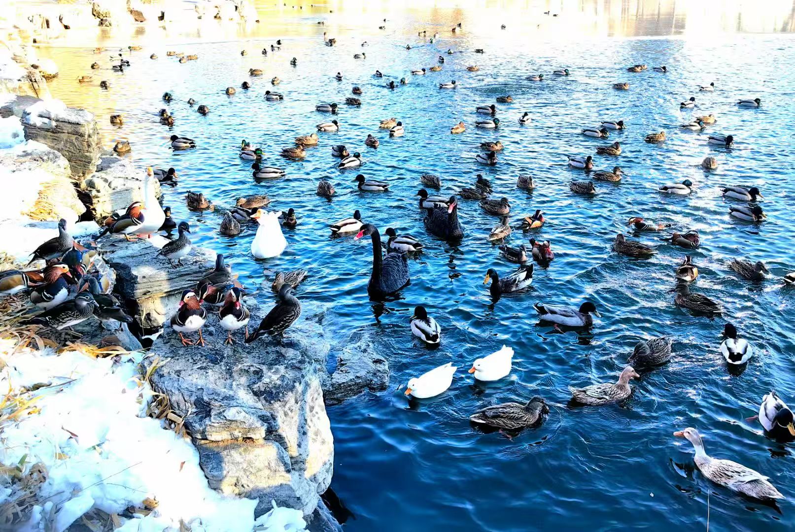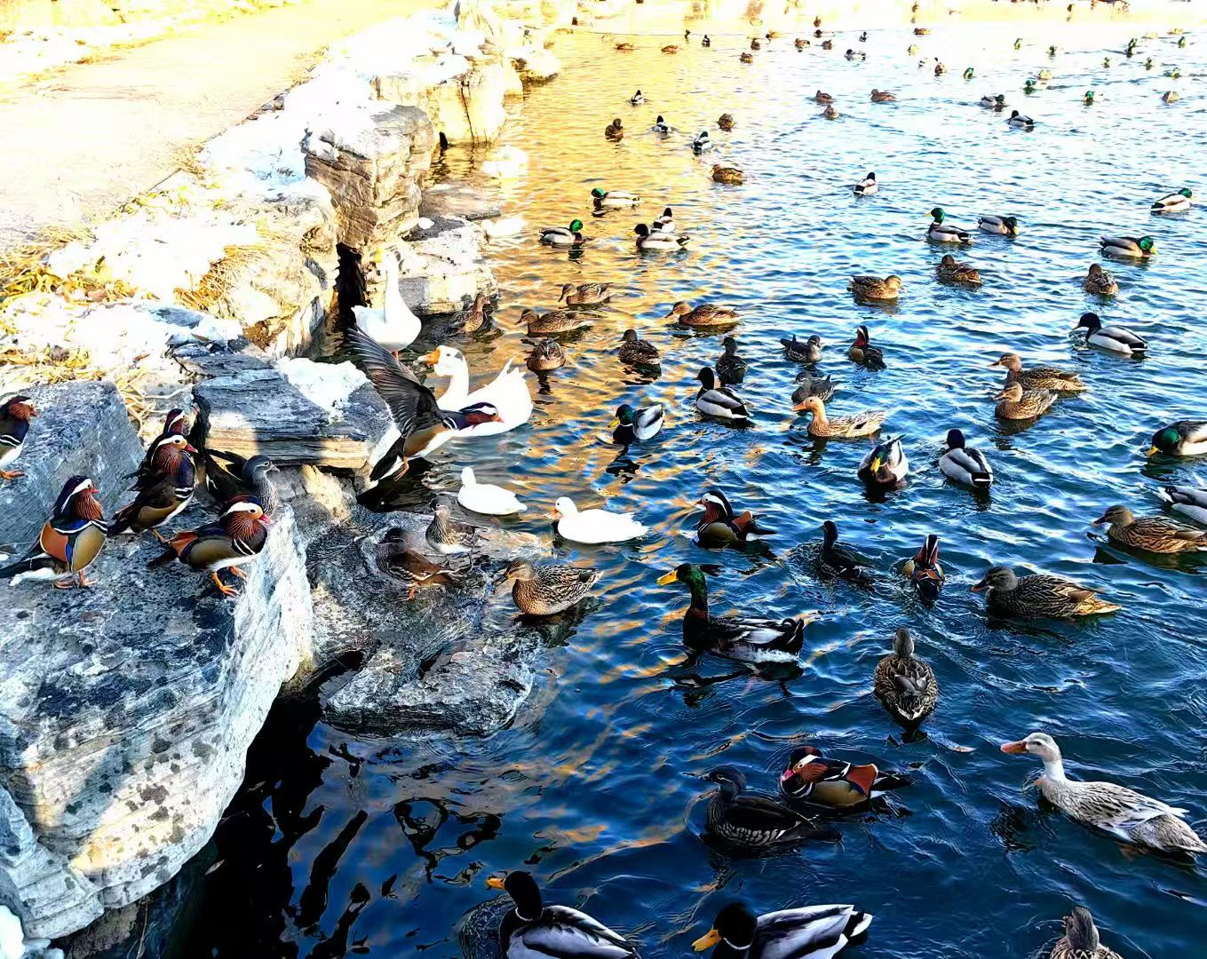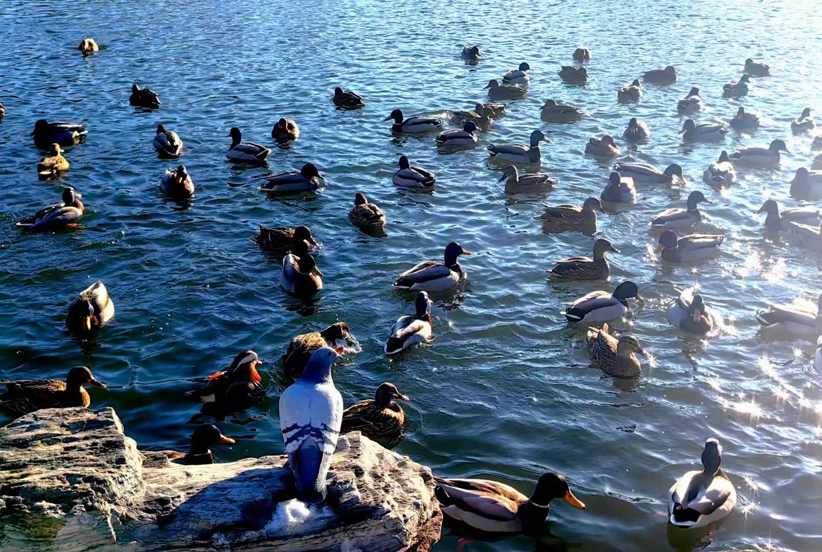 “好萌呀!”“快看,它们游过来了!”……初冬时节,农展馆后湖一派热闹景象。绿头鸭、黑天鹅、白苍鹭等水禽在这片乐园里悠游嬉戏、自在徜徉,成为市民打卡拍照的新宠。