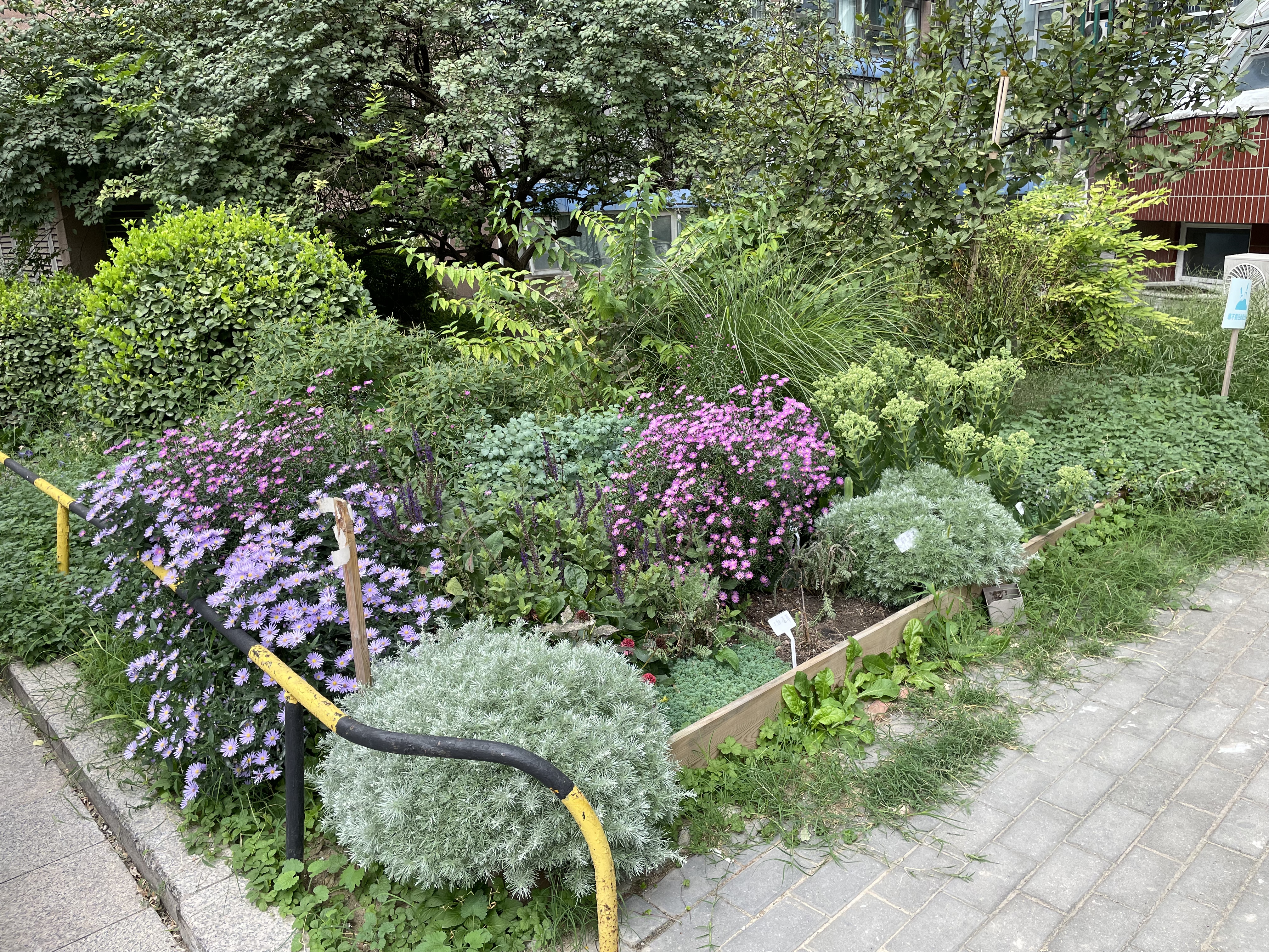 功夫不负有心人,今年叶倞的“绿化实验”大获成功,不仅解决了小区花园养护的难题,还实现了“低维护、高观赏”的目标。如今,这处16平方米的微景观成了社区里最火的“打卡地”,大家散步时会特意绕过来看看花、认认草,还有热心居民DIY了科普标识牌,参与到小花园的维护中去。