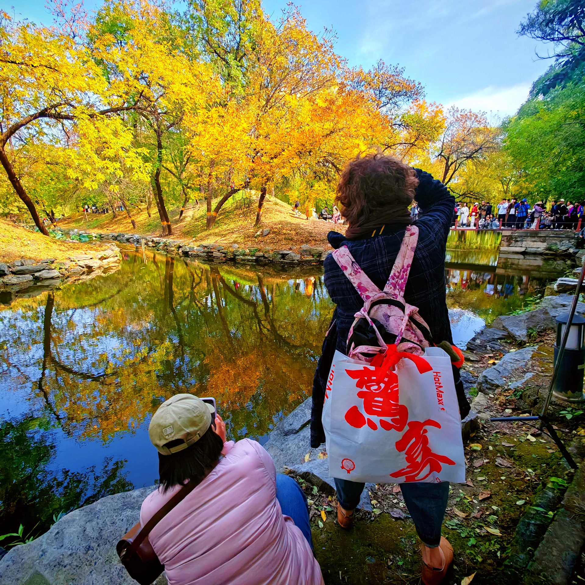 她在记录风景,却不知自己也已成为了他人拍摄风景中的一部分——现代人的游览方式与古典园林的秋色在此刻和谐相融,历史与现实在取景框里完成了跨越时空的对话。