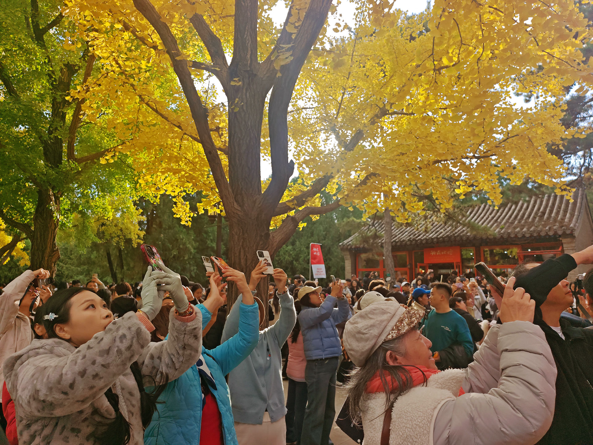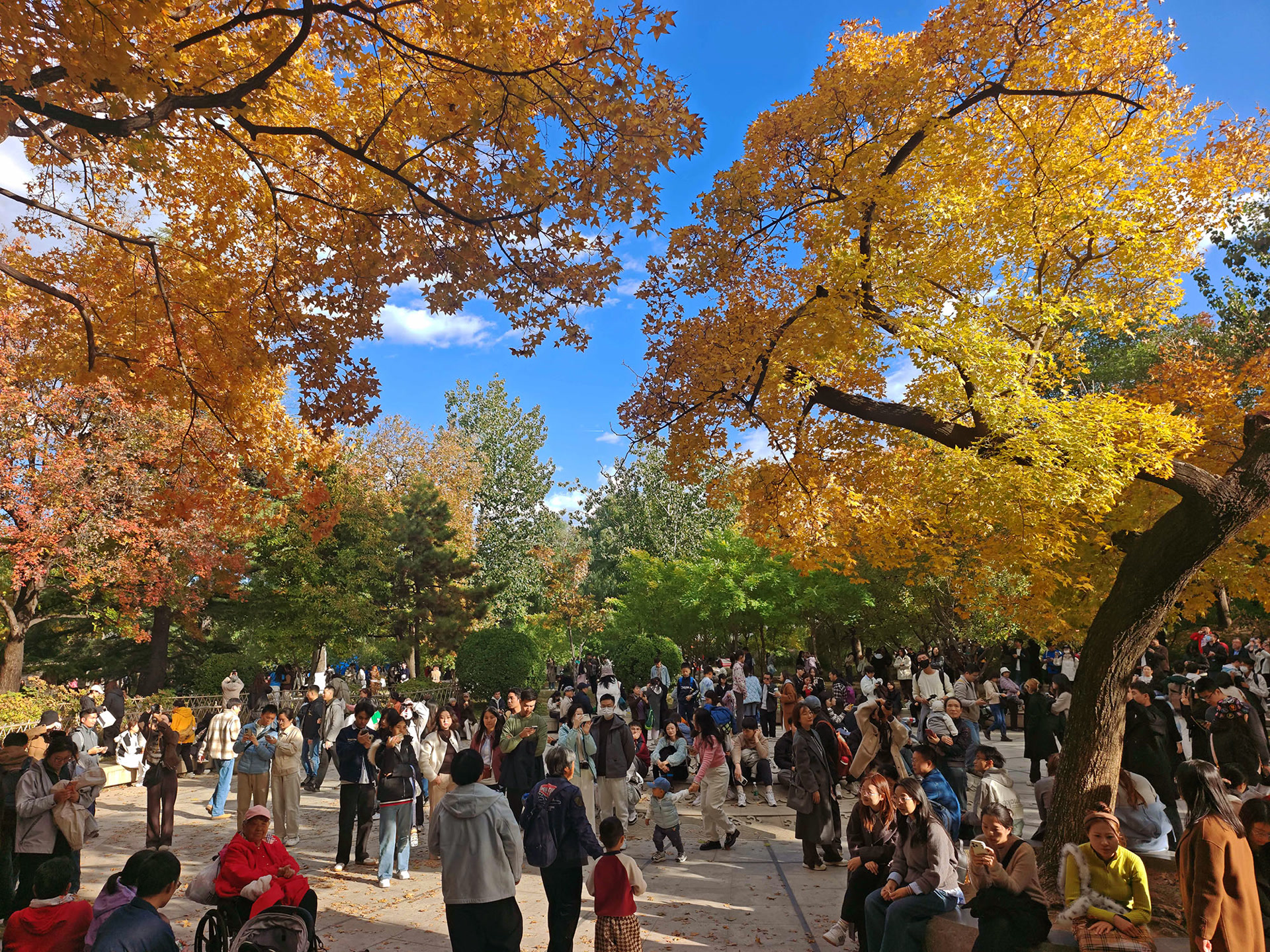 11月1日,恰逢地坛公园举办的第十一届地坛银杏文化节启幕,园内更是人气旺盛。