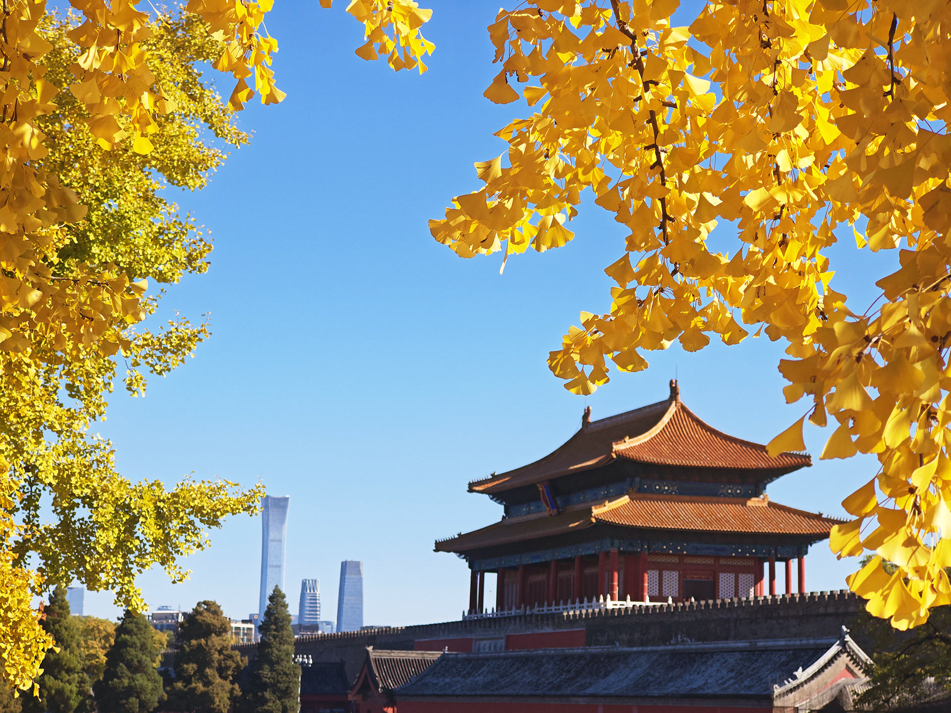 再细看这座秋日里的皇城,这里金黄与朱红在阳光下交织出令人心醉的色彩,拥有着独属于北京秋日最大场面奢华配色。