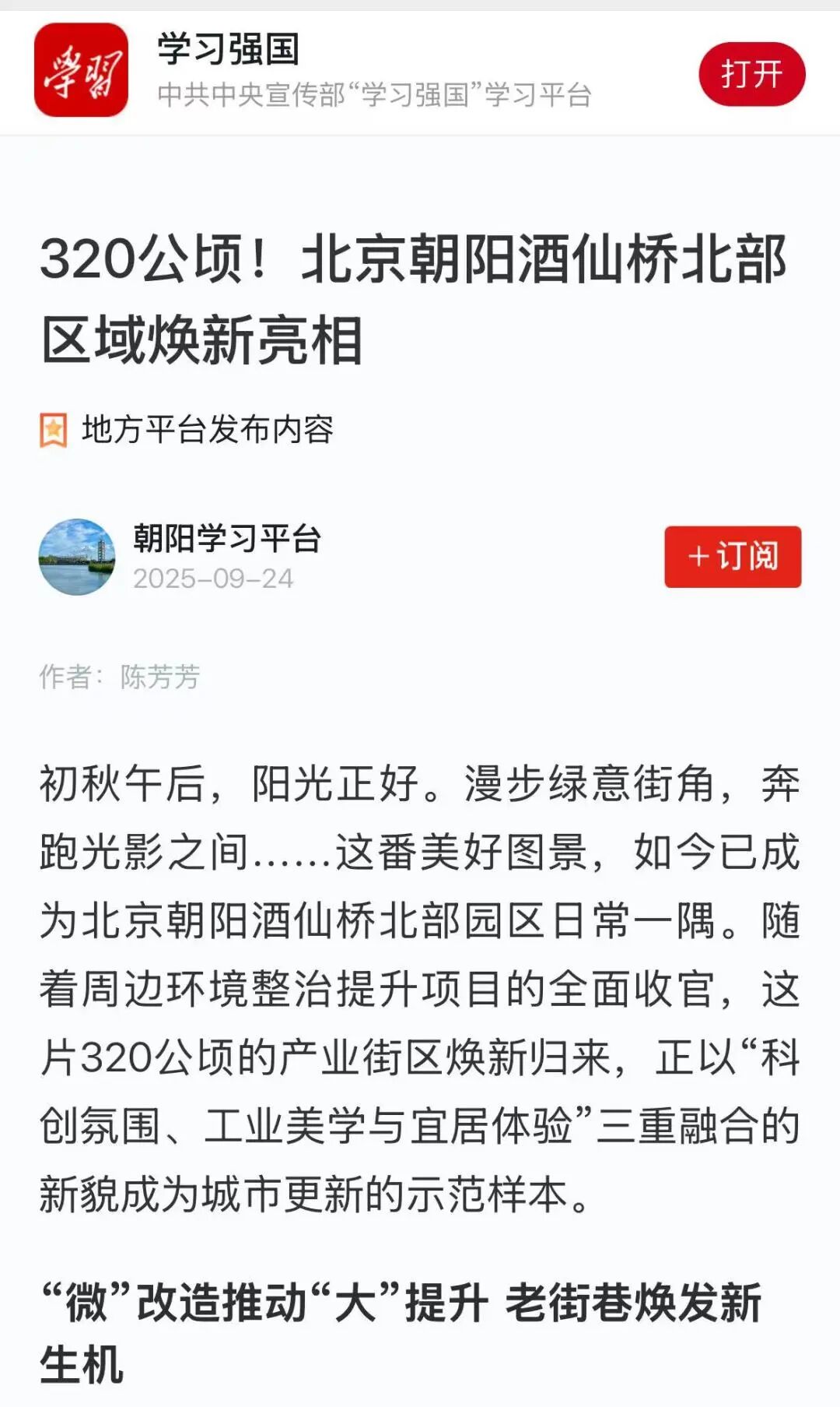 △ 学习强国平台报道酒仙桥北部区域焕新亮相