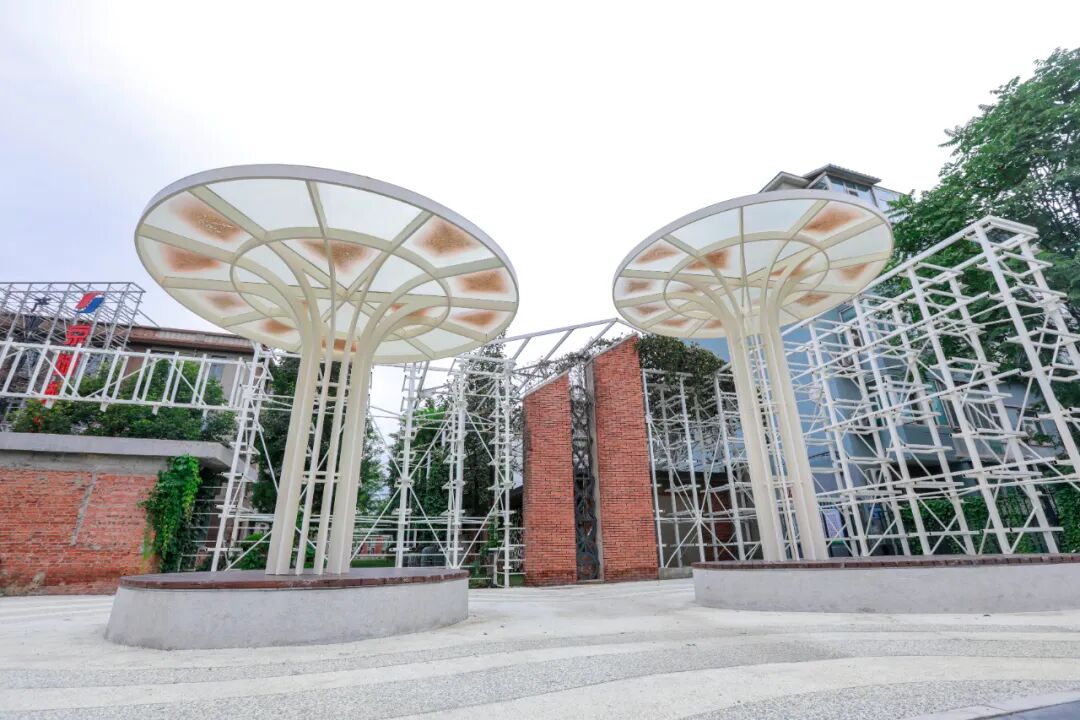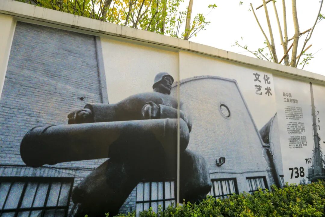文化艺术区通过工业装饰,拼贴组合成画面图案,矗立的雕塑结合工业转型遗迹,形成简约及有动态美的艺术墙绘,灰色和立体的搭配,既沉稳又富有活力。
