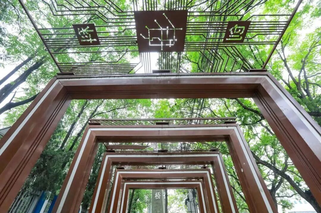 酒仙桥街道深入挖掘本地特色,将“工业遗产、文化艺术、科技创新”三大文化IP巧妙嵌入街巷细节。树池篦子上勾勒出了电阻、电容轮廓,呼应酒仙桥作为电子工业发源地的历史;街区座椅和连廊中融入光谱元素,展现艺术与科技交融。