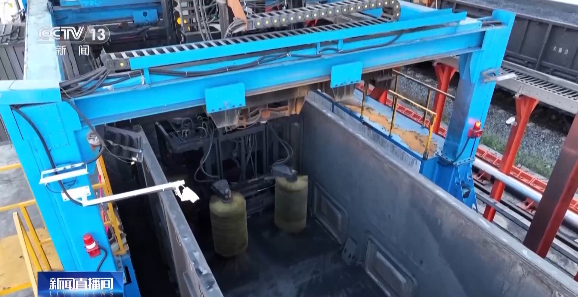 不远处,大型起重机正在往船上装集装箱,这是今年港口新推出的“水铁直连”的煤炭运转模式。整集装箱的煤通过铁路运到这里,不再经过卸煤和存储的过程,而是通过精准的需求调度把集装箱直接装船,通过运河发往目的地,把整个周期从5天缩短到3天,也提升了港口能源保障的效率和能力。