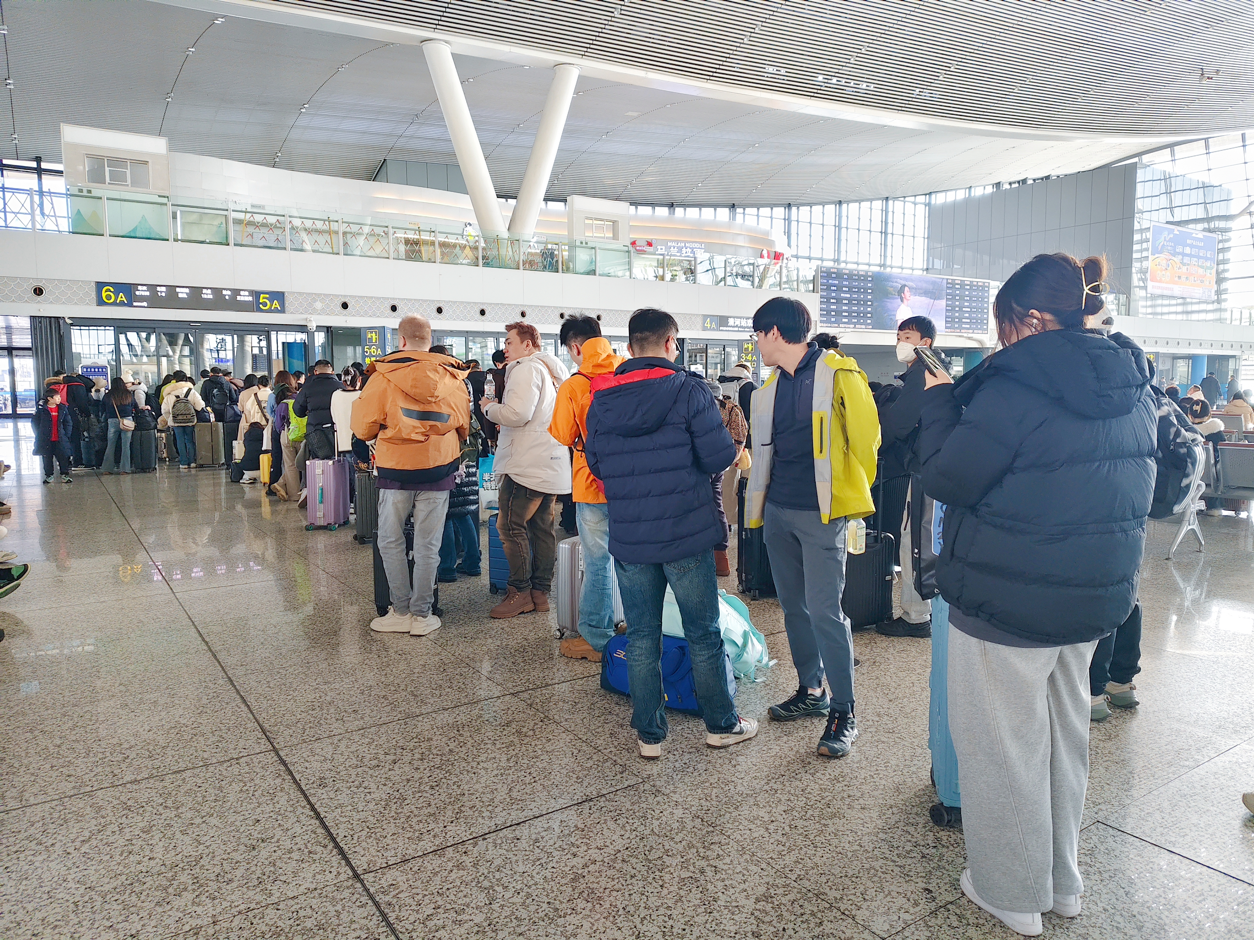 11月21日,周五。北京清河火车站内,滑雪爱好者排队陆续登上开往河北张家口崇礼的列车。车厢及过道挤满了人,列车窗户上也满是冰雪元素,周末去崇礼滑雪热情高涨。
