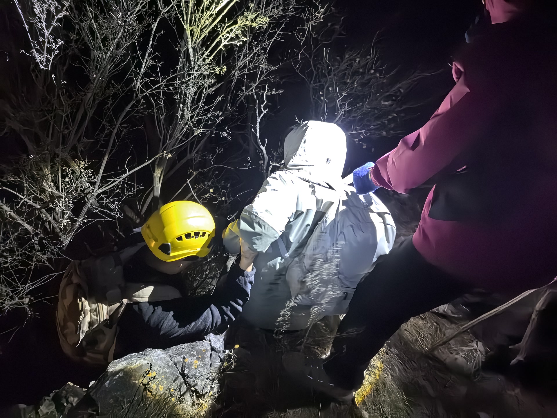果然,随着夜幕降临,山区温度持续下降,消防员的体感温度已接近冰点。由于信号时断时续,无法通过定位精准锁定女子位置,大家只能结合她描述的地形特征和自身的救援经验,在寒夜的山中“大海捞针”。