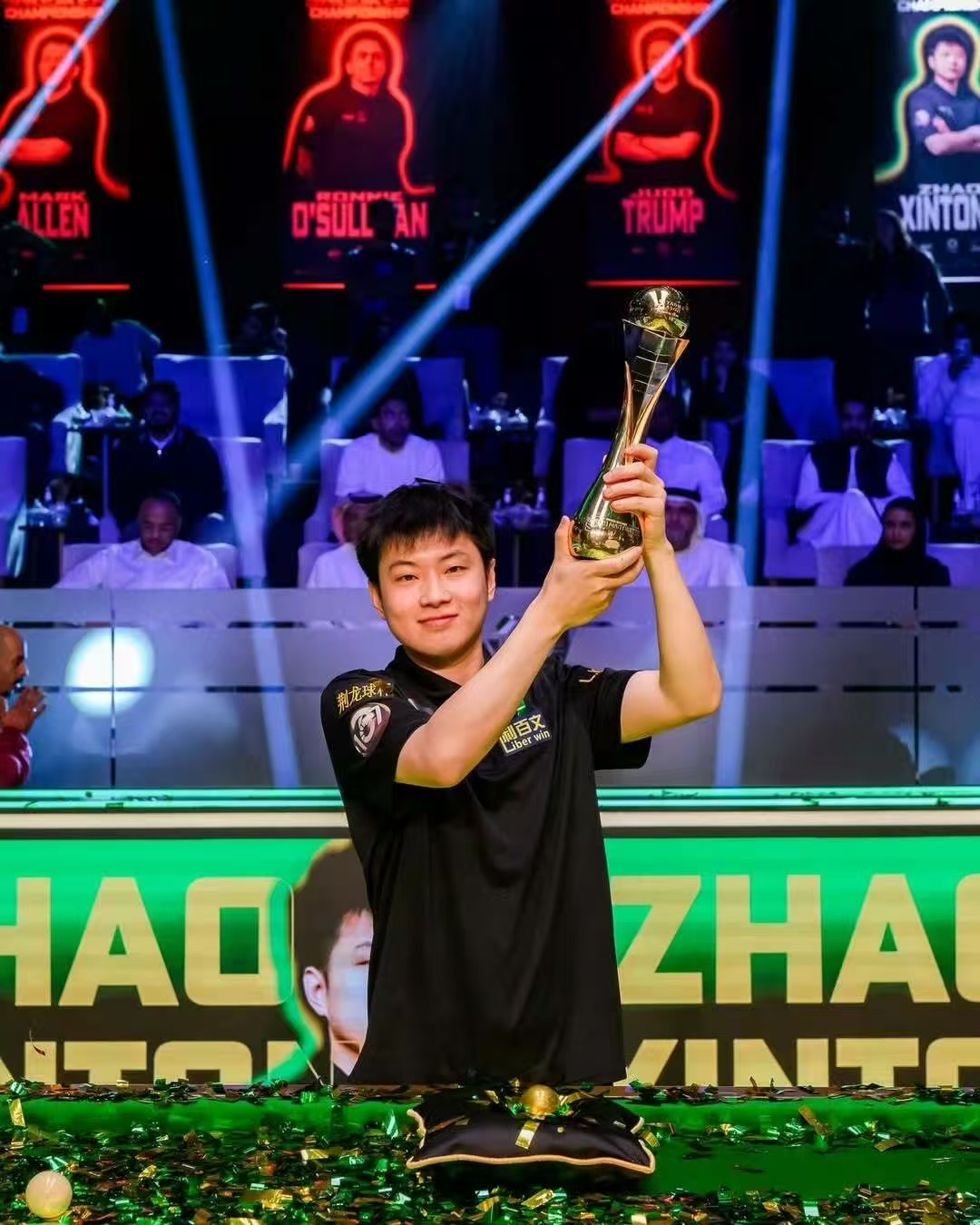 赛后,赵心童难掩激动:“我太开心了,能赢得这个冠军真的太棒了。比赛时我很紧张,但一直努力专注于台面。这是我第一次来到利雅得,这里会留下我很多美好的回忆。”他还特别感谢了现场中国观众的支持,“现场有很多中国观众,他们给了我莫大的支持,这对我来说意义非凡。”