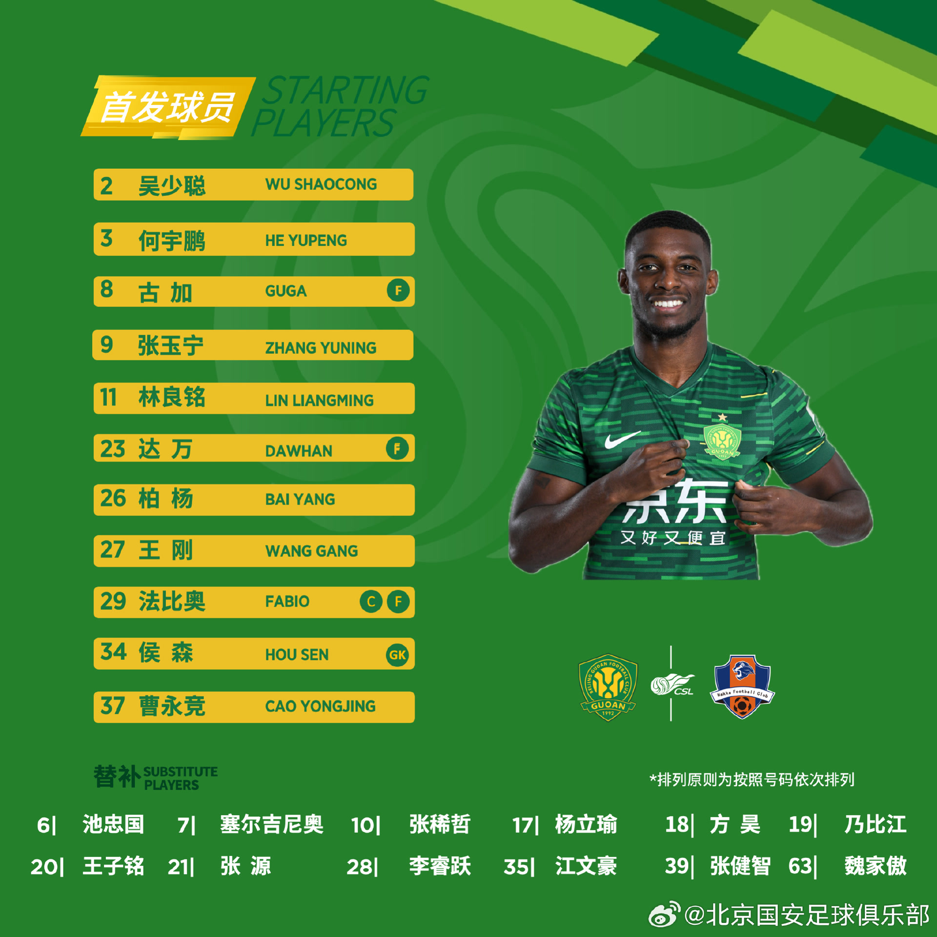 与往年不同,由于本赛季国安晋级了足协杯决赛,加上还有亚冠赛事,本场联赛收官战并非本年度告别战。国安本场尽遣主力,其中,外援法比奥首发出场,若能进球有望竞争本赛季最佳射手殊荣。