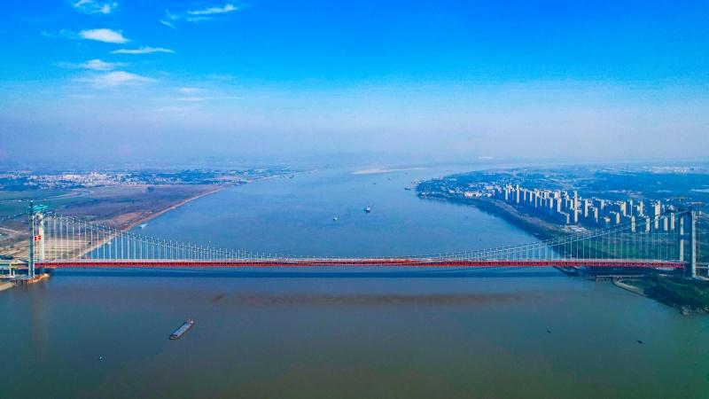 燕矶长江大桥所在江面宽阔、水文条件复杂、四主缆钢桁梁吊装精度要求更高。“为保障大桥顺利合龙,我们对合龙口的标高、里程和轴线不间断地进行监控与测量,精确计算温度、风力等环境因素对钢梁形变的影响,最终,钢桁梁以毫米级的精度平稳嵌入预定位置,南北两岸顺利‘牵手’。”中交二航局燕矶长江大桥项目总工程师罗航说。