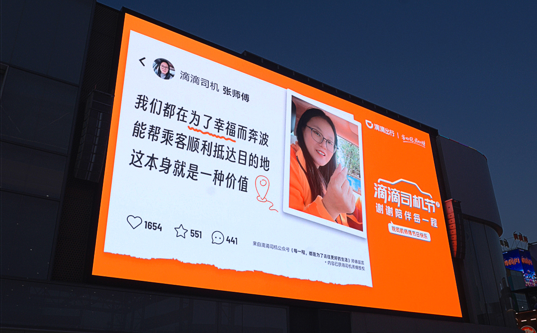 自11月18日起,滴滴已经陆续在北京、武汉、温州、乌鲁木齐、呼和浩特等16个城市举办司机节分会场活动,为数千名优秀的司机师傅颁发荣誉奖项。此外,司机节期间,滴滴在北京华熙Live、深圳双子塔、武汉龟山电视塔、合肥正大广场、郑州海昌海洋公园等10座城市的地标建筑点亮大屏,祝滴滴司机节日快乐,为司机师傅们送出专属节日祝福。