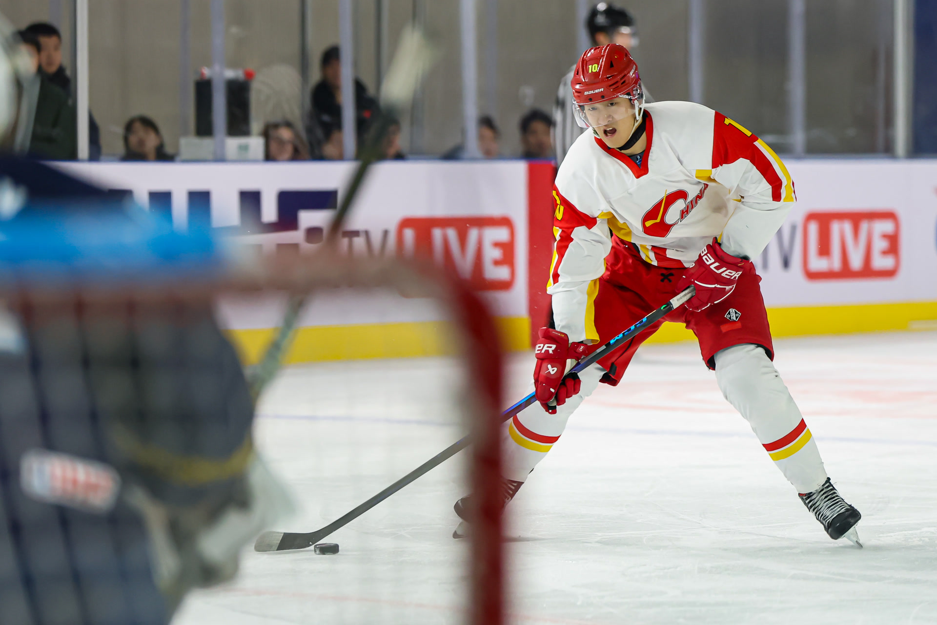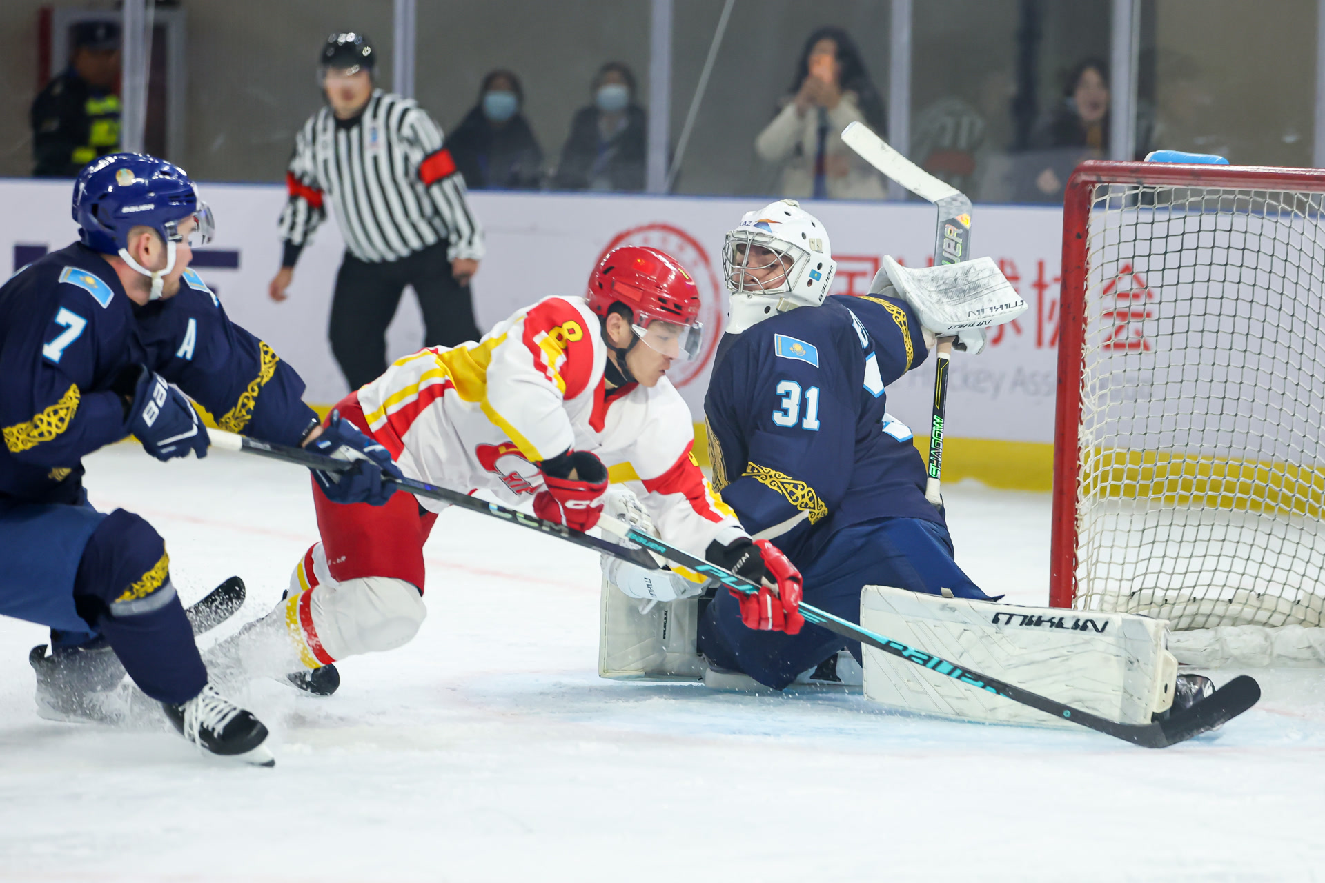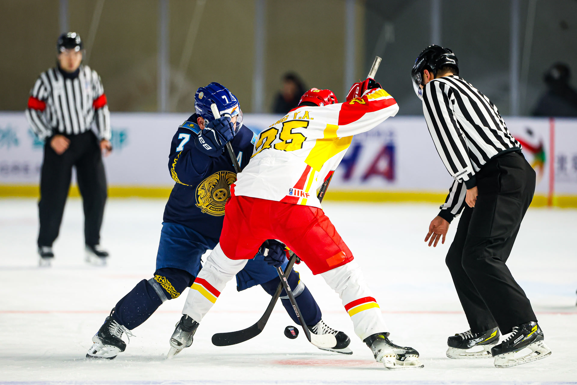 本届比赛,中国男冰在首个比赛日中战术执行不力,在率先进球的情况下,以1比4遭日本队逆转。休整一日后,队伍迎来卫冕冠军哈萨克斯坦队。开场仅3分4秒,后者便率先进球。中国队随后稳扎稳打,在顽强防守的同时伺机反击,几度形成有威胁的进攻,但可惜未能转化为破门,首节以0比1落后。