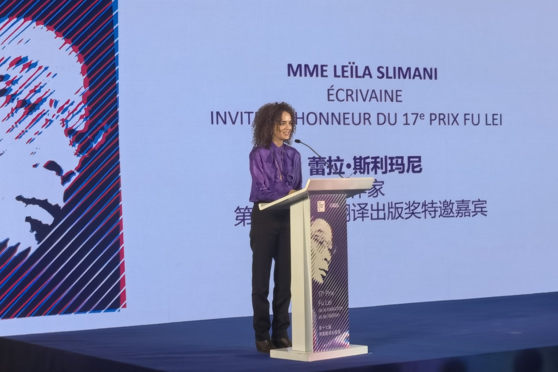 摩洛哥裔法国知名作家蕾拉·斯利玛尼应邀出席本届傅雷奖活动。她的作品《温柔之歌》曾获法语文学最高奖项龚古尔奖,销量超过100万册。她还被法国总统马克龙任命为法语国家事务特别代表,已有多部作品中译本在中国出版。斯利玛尼表示,译者就像一位使者,为读者带来其他国度的声音。在人工智能逐渐突破语言障碍的当下,作者也应该注意并捍卫本国语言的独特价值。
