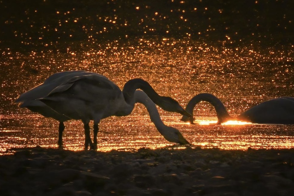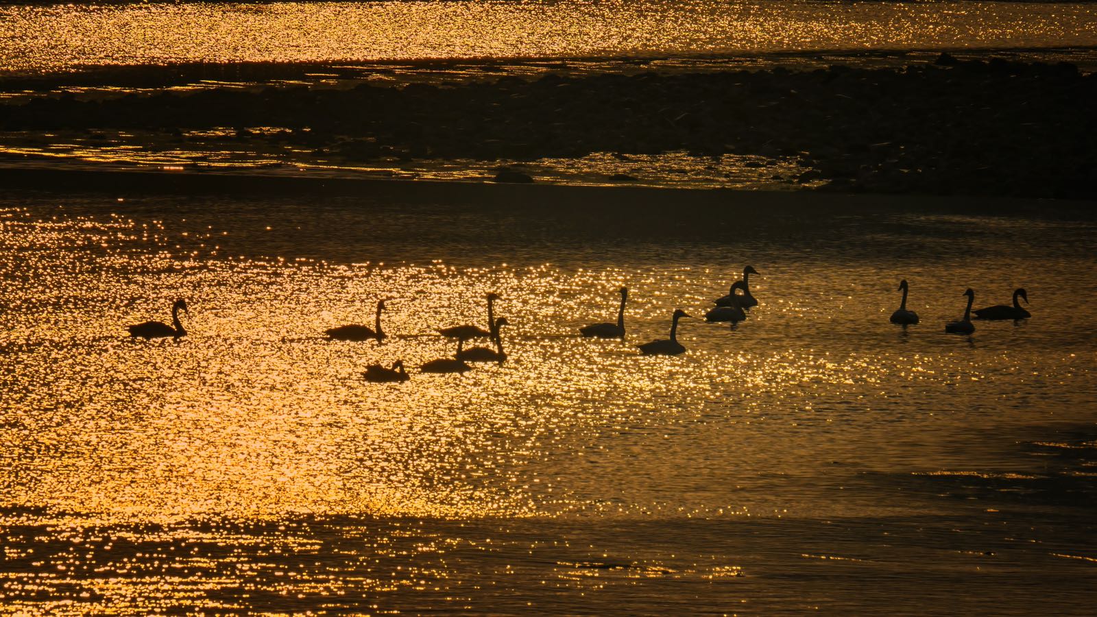 三种天鹅齐聚共舞,北京密云清水河变身候鸟乐园