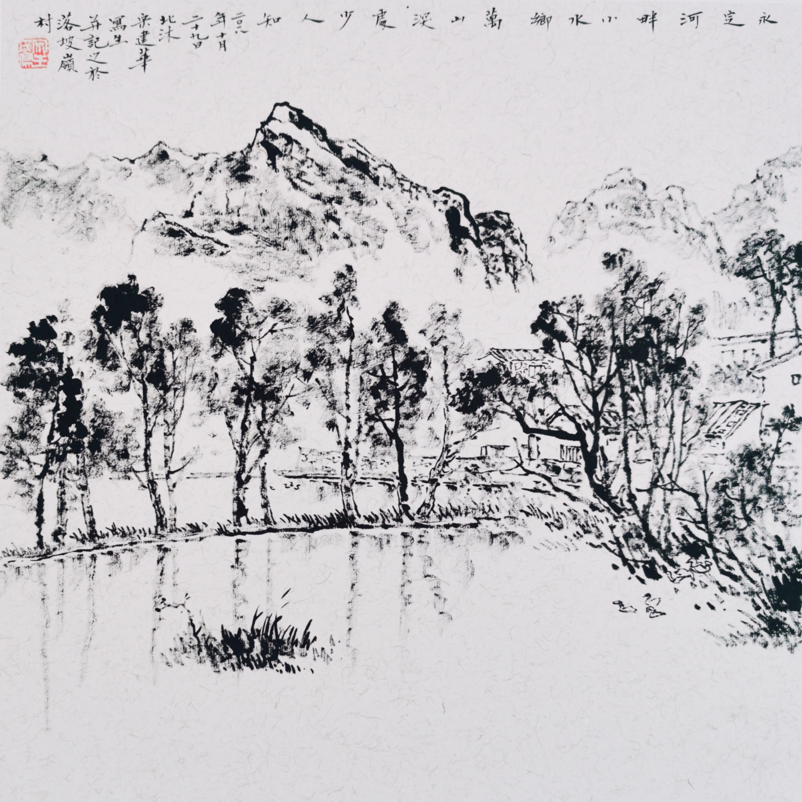 绿水青山在笔墨生发中映入了画面,这一刻时光似乎停住了。