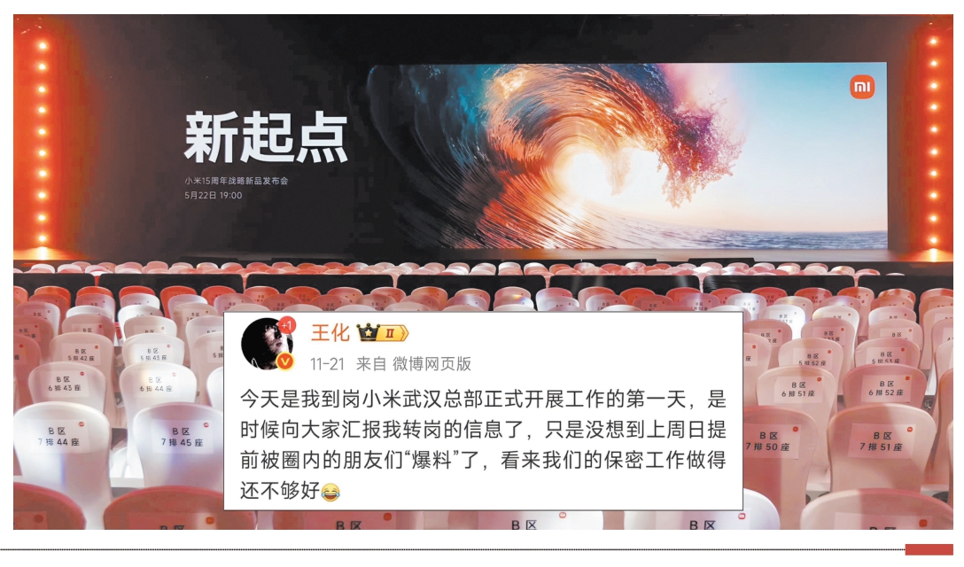 随着王化官宣转岗至小米武汉总部,同日市场消息称小米集团发布《组织调整及干部任命通知》,任命王化担任武汉区域总部综合管理部总经理,向武汉区域总部总经理王扉汇报;任命徐洁云兼任集团公关部总经理,向集团副总裁、CMO、集团战略市场部总经理许斐汇报;同时徐洁云继续担任集团战略市场部副总经理兼集团董事长特别助理。北京商报记者就该文件向小米集团方面核实,但截至发稿未得到回复。此前一周,就王化转岗及继任者情况,记者也从业内人士处了解到上述情况,当时对方表示还没有新的继任者,徐洁云可能会“先盯一段时间”。