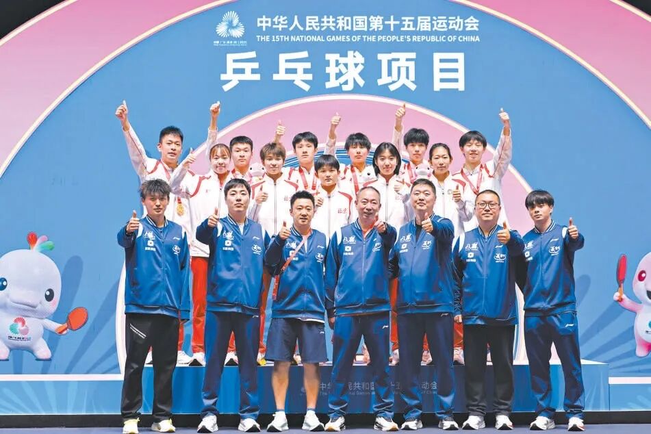 乒乓球赛场可谓多线作战、多点开花。11月20日晚,东城乒乓球运动员黄友政、闫安在乒乓球男子团体决赛中,携手队友马龙、王楚钦、徐晨皓,经过4场角逐以3:1战胜上海队夺得冠军。这也是北京队继1993年七运会后,时隔32年再次获得全运会乒乓球男团冠军。
