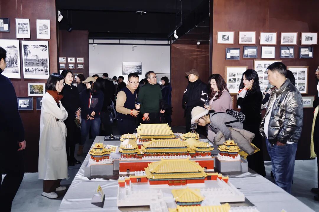此外,现场还开放多本老北京历史影像珍贵书籍供观众深度阅读,入口处的1928年《京师内外城详细地图》、藏家提供的1953年英国凤头古董自行车,均成为观众打卡热点。展厅中心,由胖小齐积木设计工作室两位“80后”主理人打造的北京中轴线“故宫部分”拼插装置,以13万块积木搭建而成,满含对北京中轴线的礼敬。