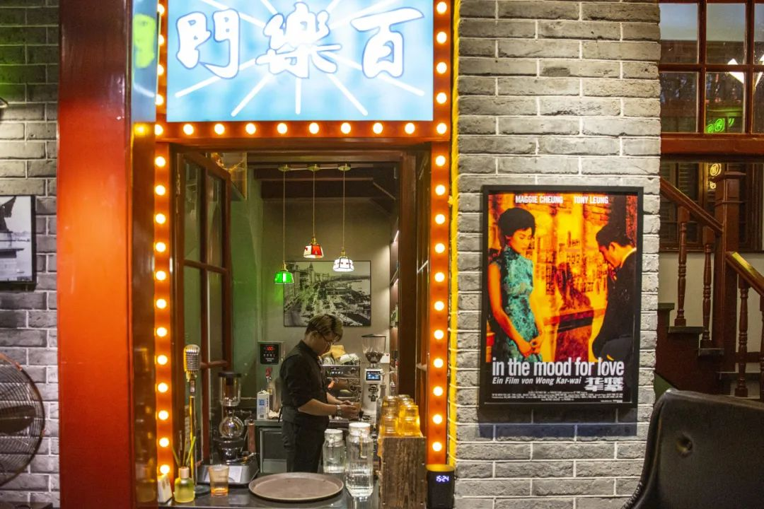 走进里面的石库门咖啡馆,仿佛穿越到民国时期的老上海。店里摆放着老式照相机、留声机、咖啡机等老物件,充满怀旧气息。那沧桑而质朴的木质楼梯与五彩斑驳的玻璃窗户,也交织出一种别具一格的美学体验。
