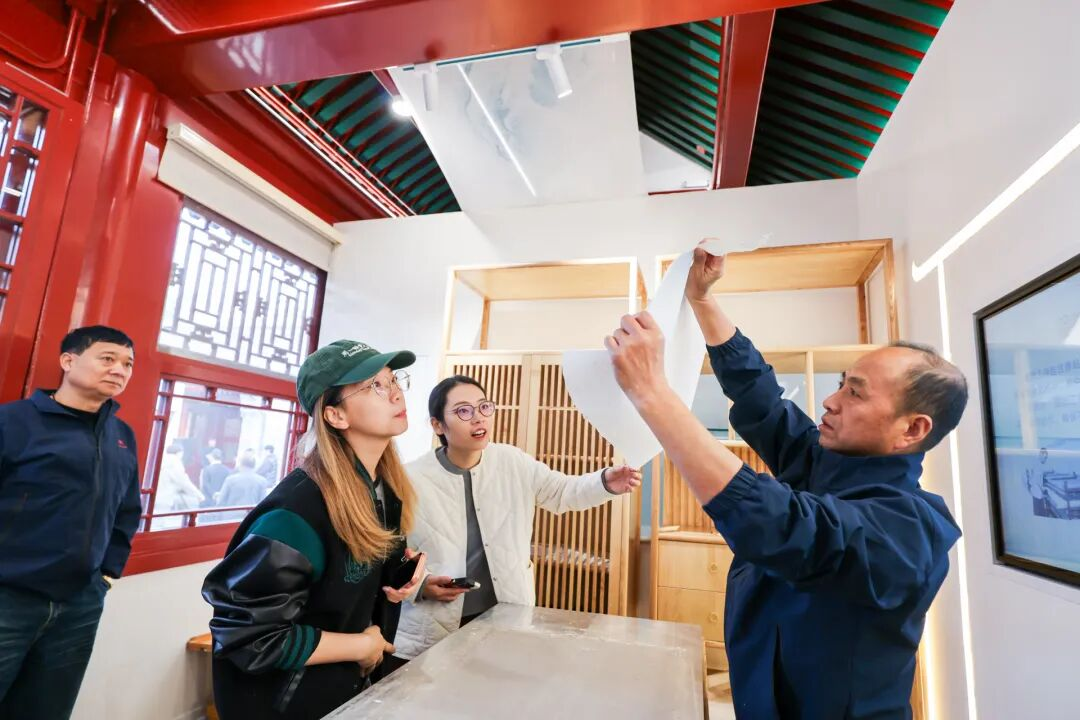 会馆设置五个展区,分别从环境生态、技艺传承、品牌价值、文化内涵与艺术呈现五大维度,借助数字技术和科技互动设备,全面阐释宣纸文化的深厚底蕴。走进会馆,不仅能系统了解到宣纸制作的108道完整工序,还可以亲自体验“捞纸”“晒纸”等核心技艺,直观感受到非遗工艺的精妙。