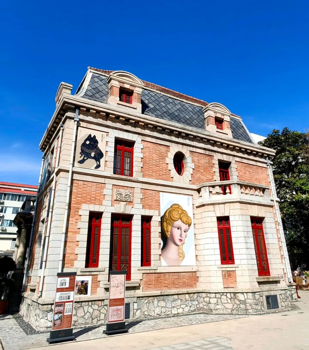 步入园区,红砖砌成的老洋楼瞬间映入眼帘,红色窗棂典雅复古。午后阳光正暖,园中心的老树下,游客正坐在木椅上休息。这座百年法式宅邸,本身就是一件“会说话的艺术品”。