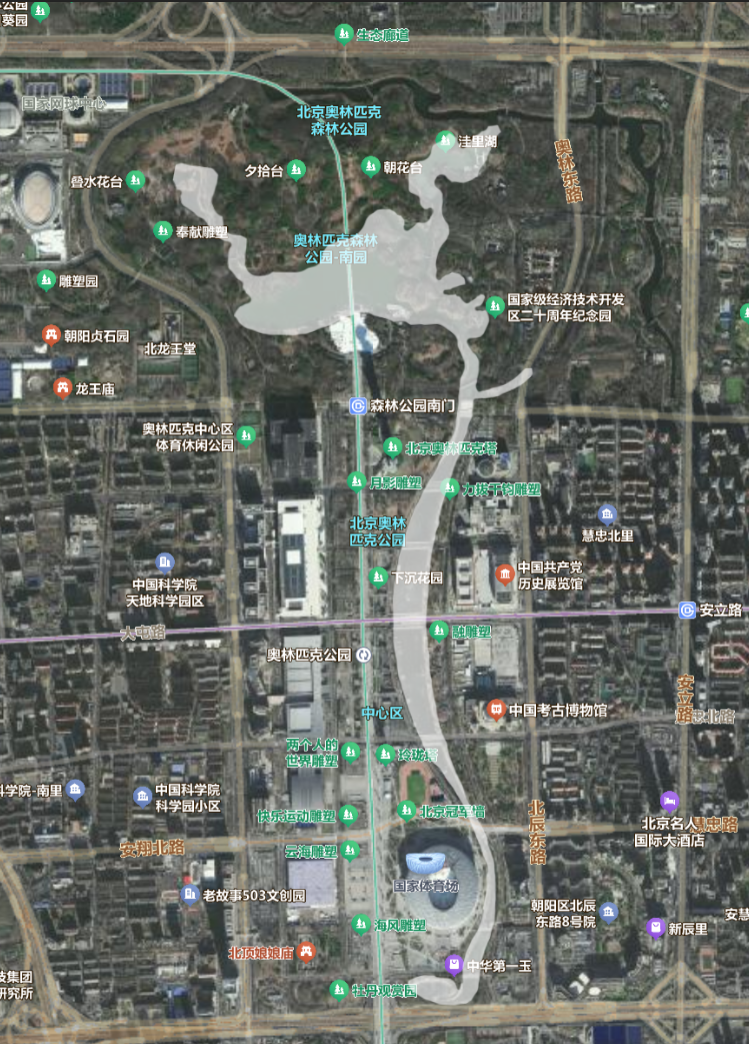 作为中轴线向北延伸的重要生态景观,龙形水系串联起奥林匹克森林公园等大片绿色空间,形成了城市的“生态脊梁”。它不仅延续了北京中轴线的历史文脉,也为现代都市注入了清新水脉与勃勃生机,展现出古都与未来共生的绿色气象。